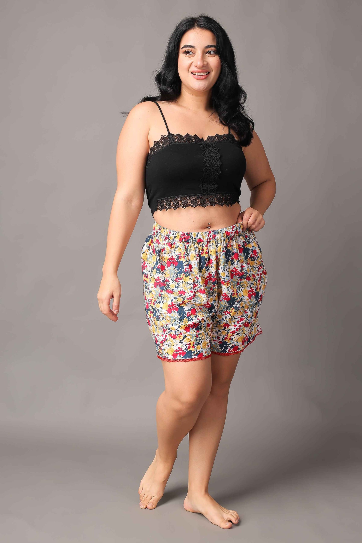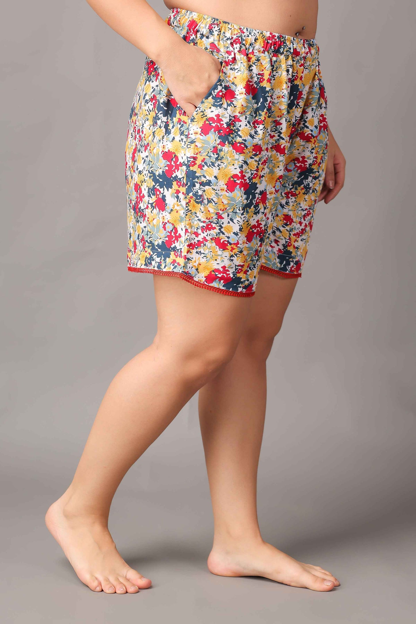 Crafted from rayon, these shorts offer a lightweight and breathable feel. The shorts feature multiple prints, incorporating a variety of patterns & colors. The combination of different prints adds a playful and eclectic touch to the overall design. Whether you're strolling on the beach or enjoying a leisurely day out, these shorts offer a playful and stylish option for your everyday wear.