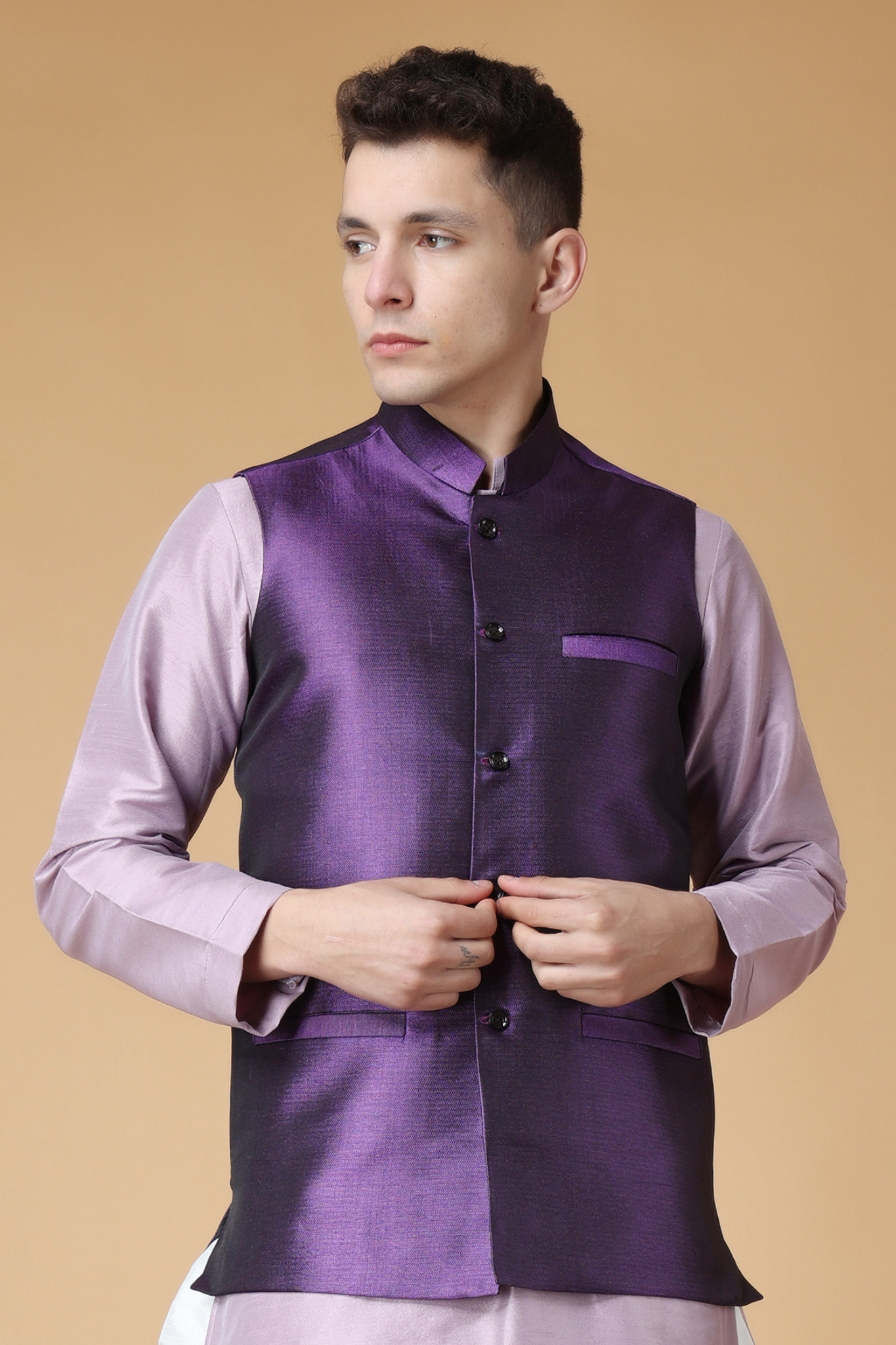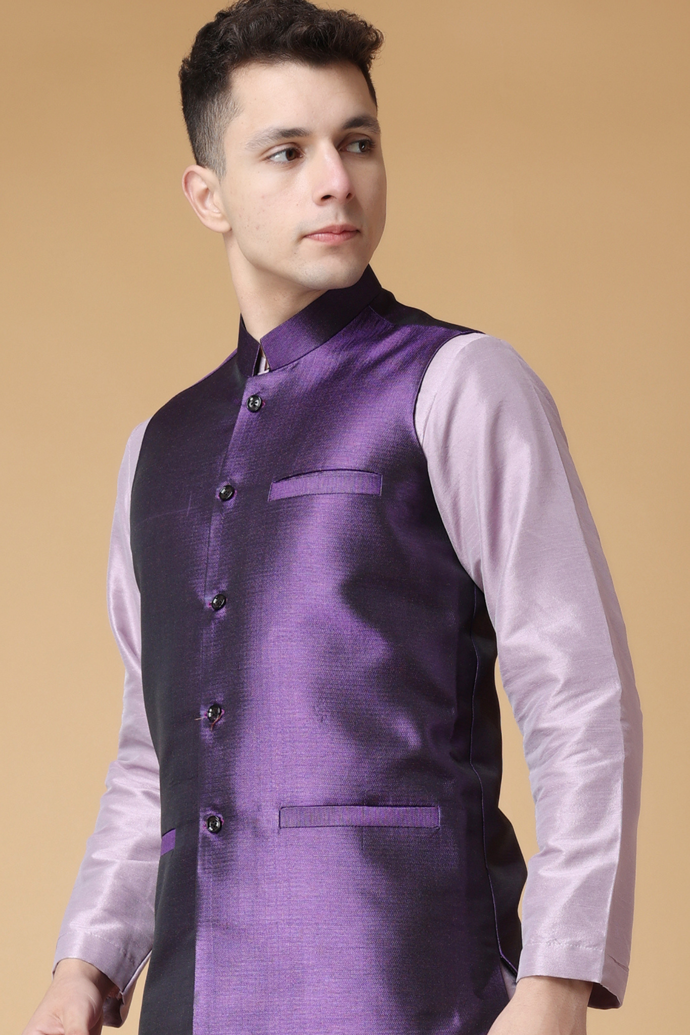 - Custom Made Silk Blend Nehru Jacket