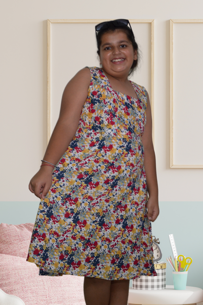 The Multi Colored Kids Comfort Dress is a chic and stylish ensemble designed to make your little ones look effortlessly fashionable. This elegant outfit features a captivating floral print all over and the multi color adds just the right pop of color to the soothing outfit. The dress is designed in a breezy Rayon material to keep your kid at her most comfortable self.
