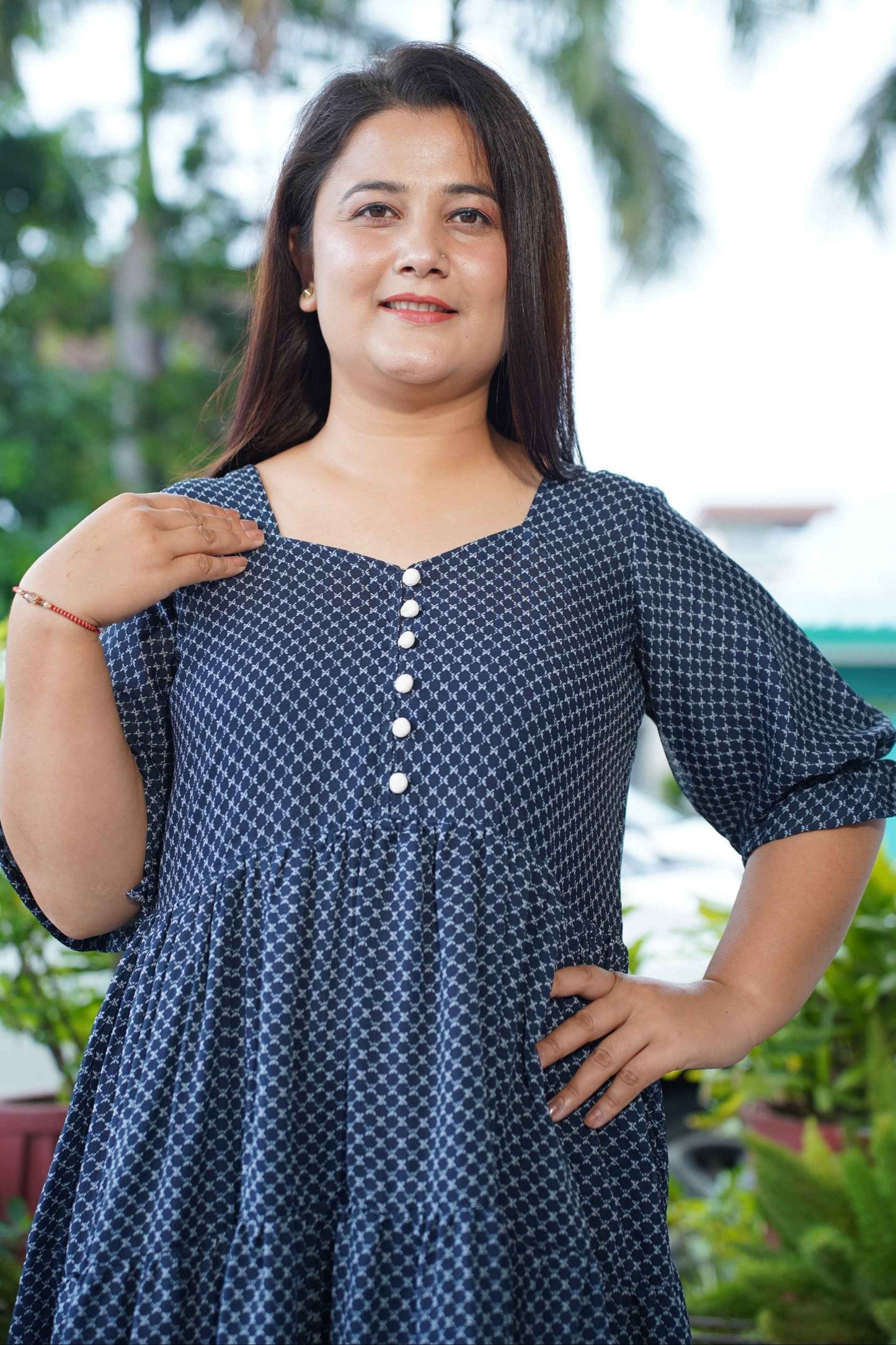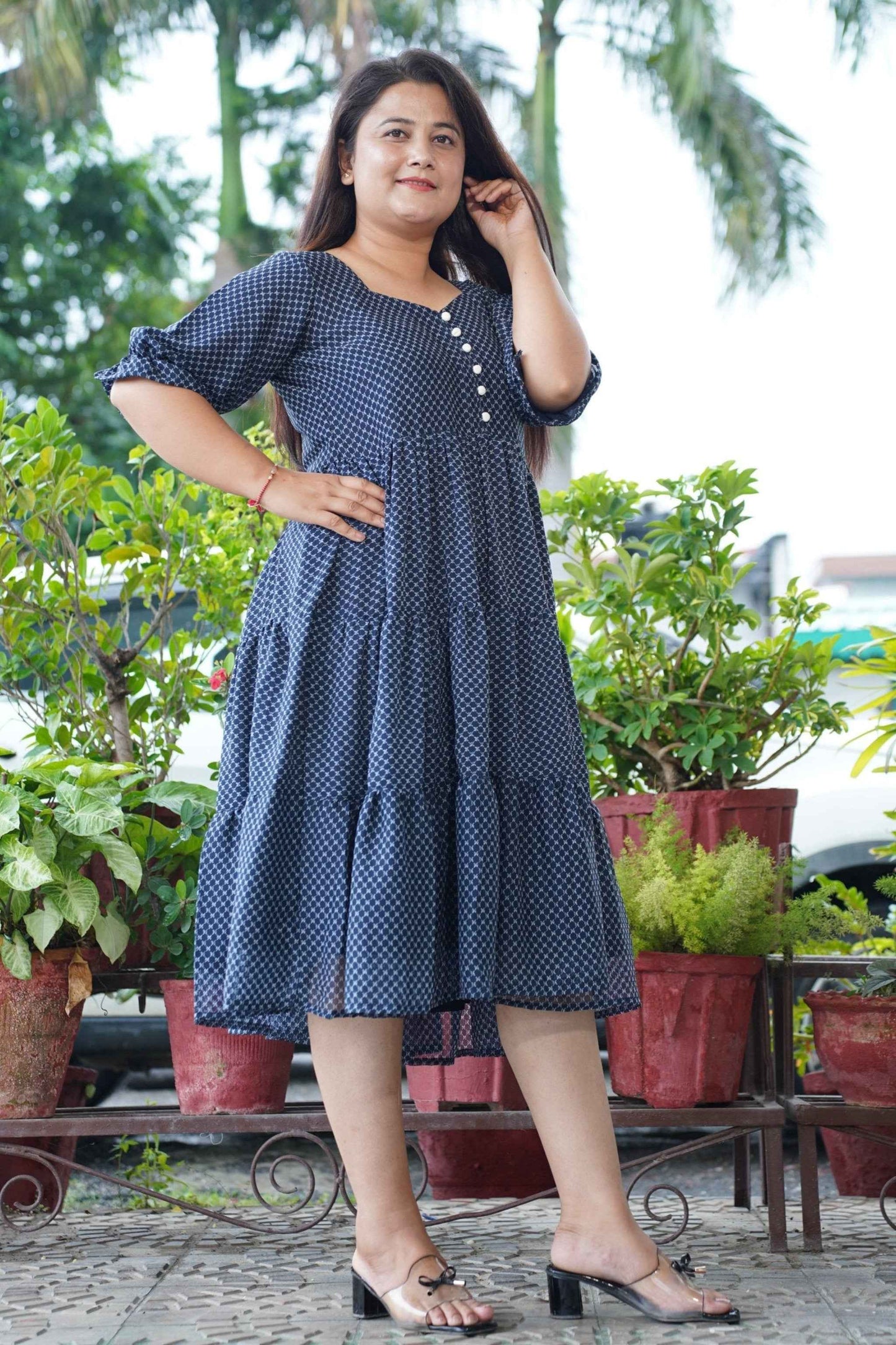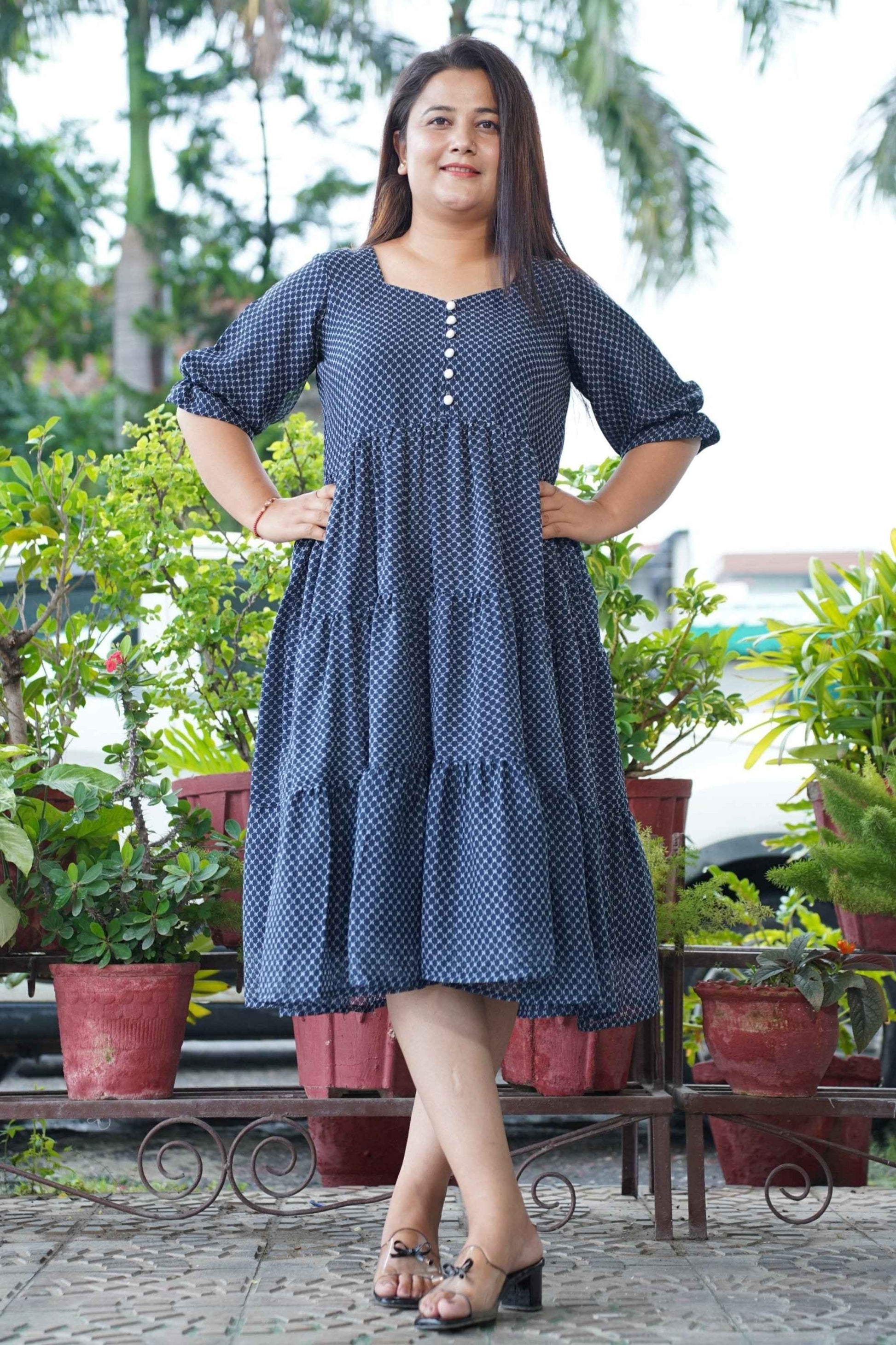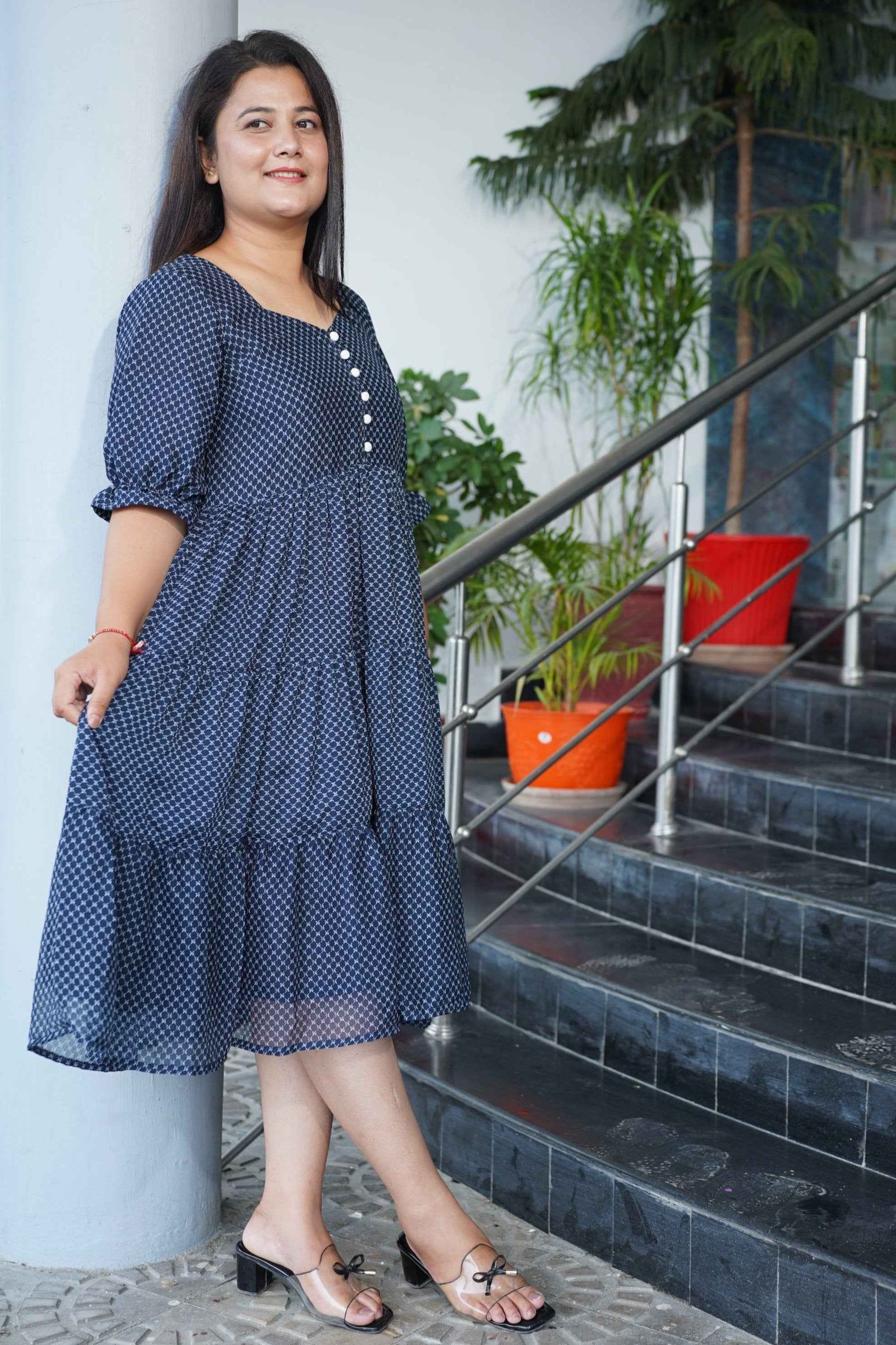 - Navy Tiered Dress made from Georgette fabric