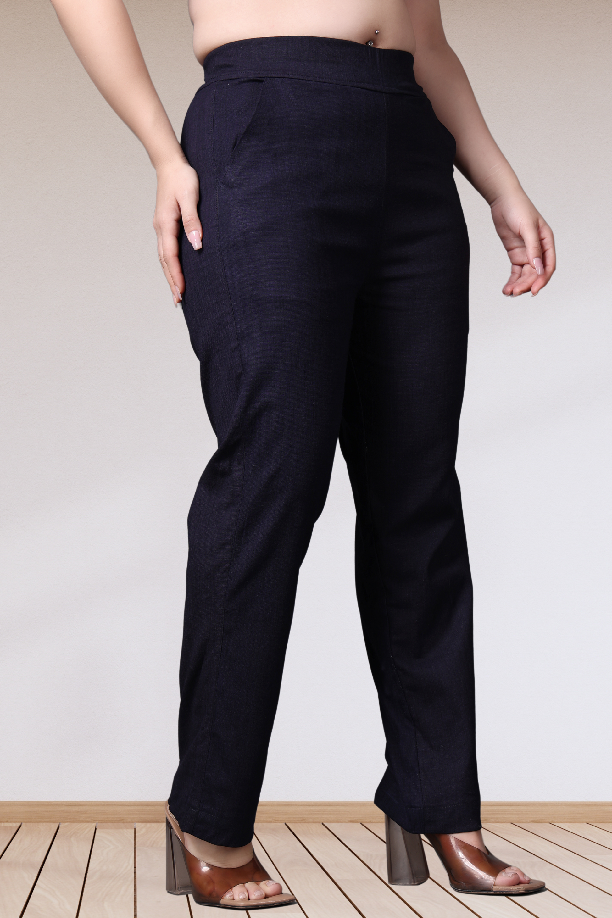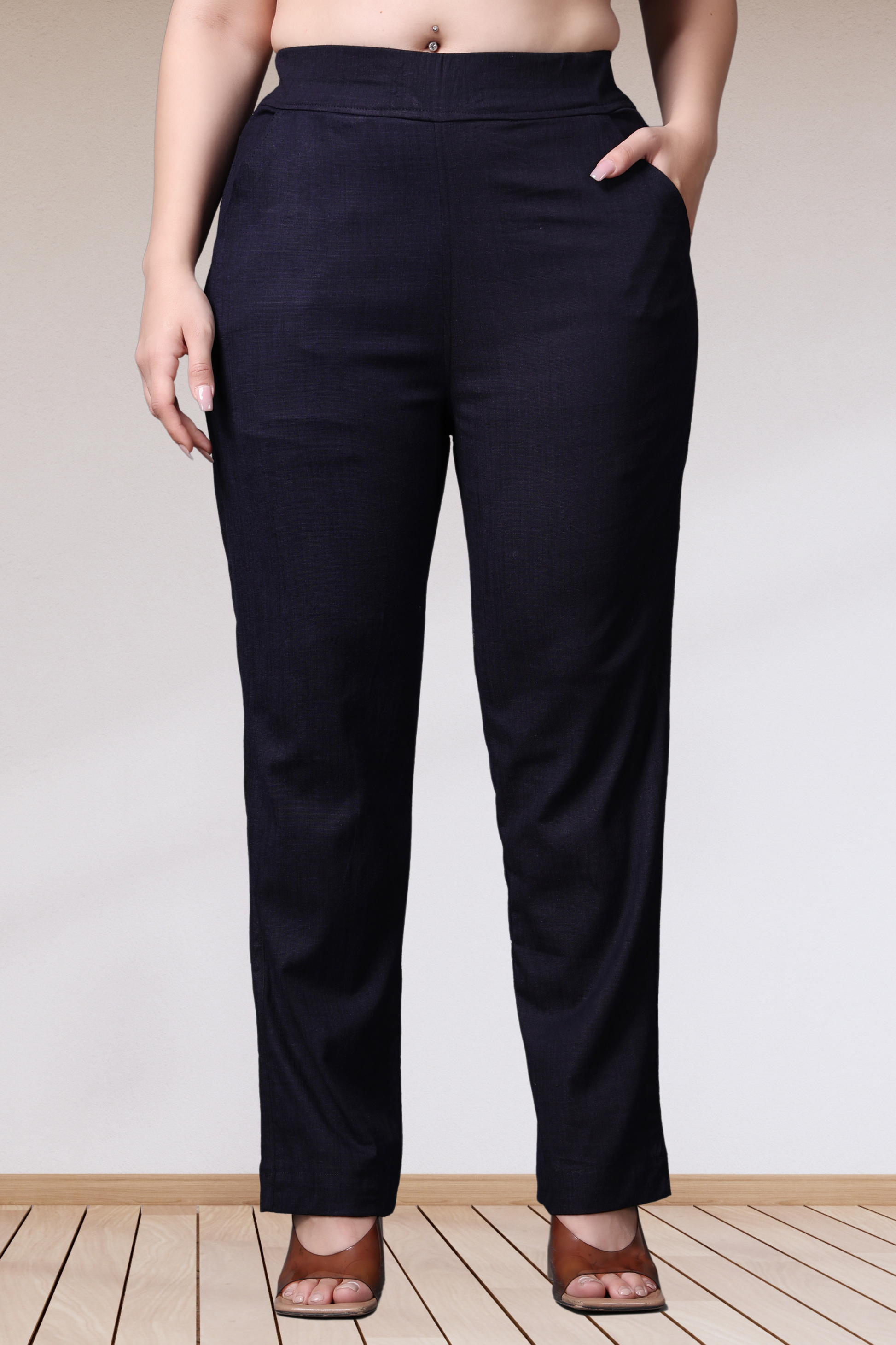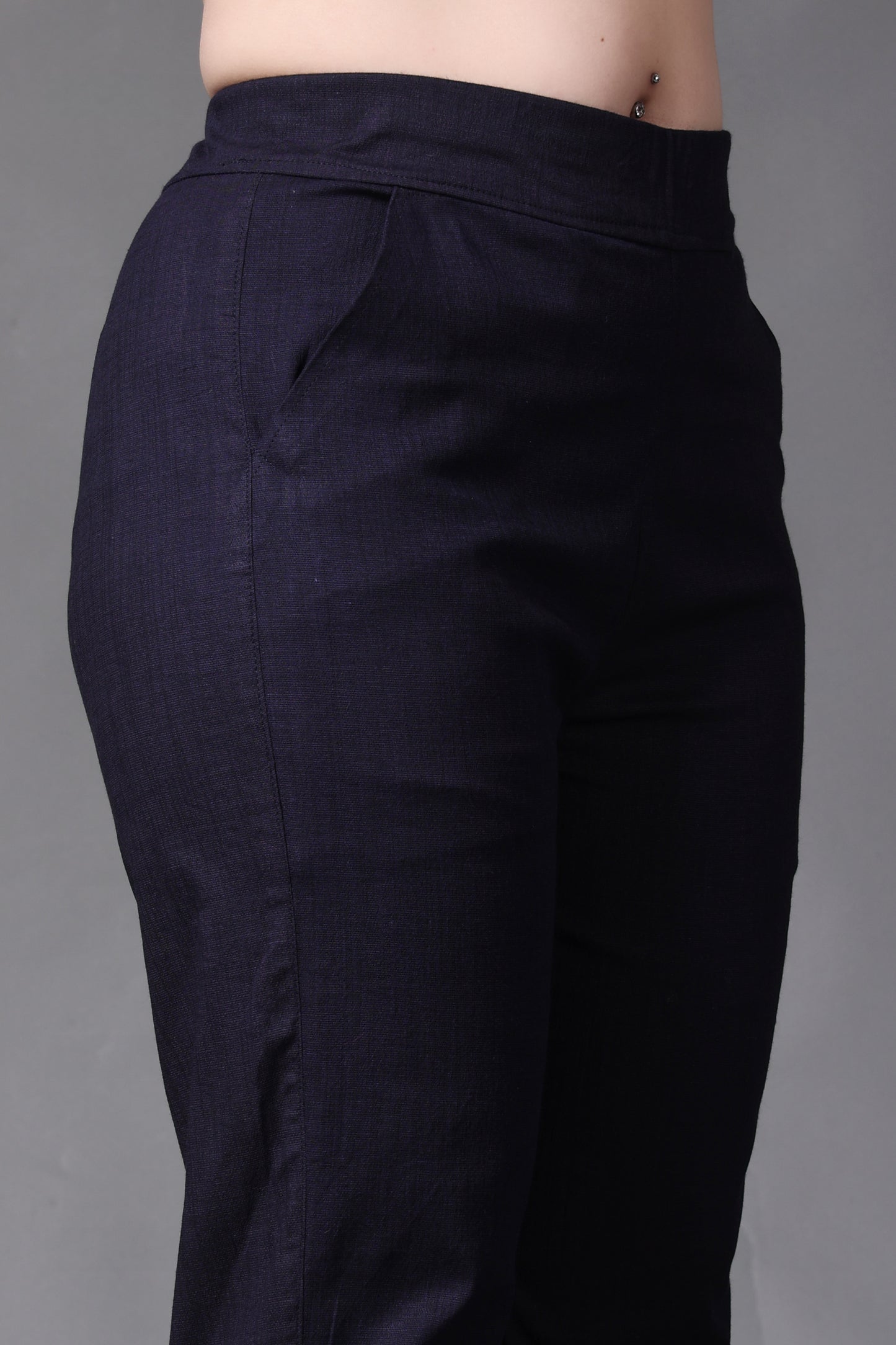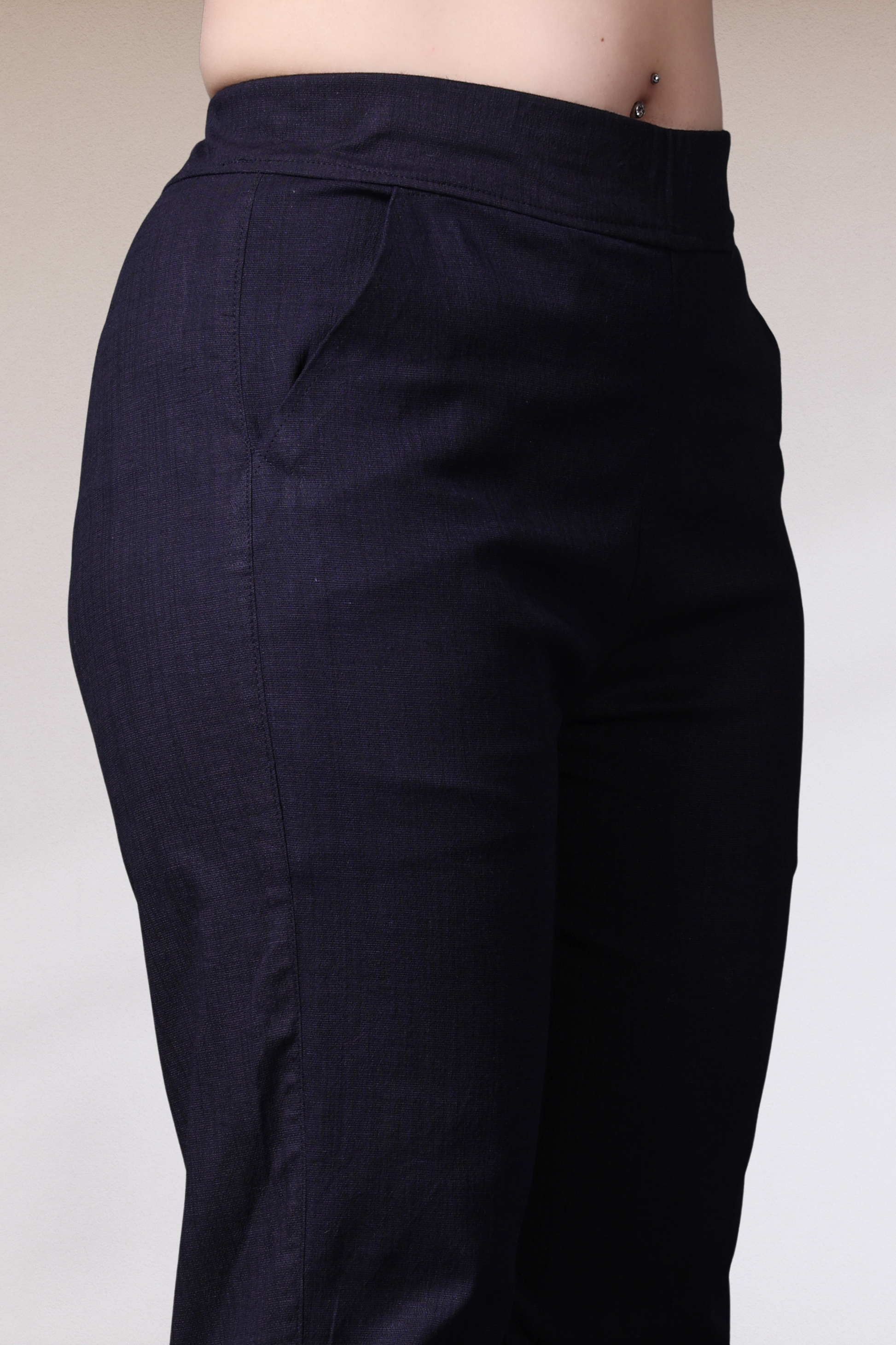 Navy Lycra Slub Pants