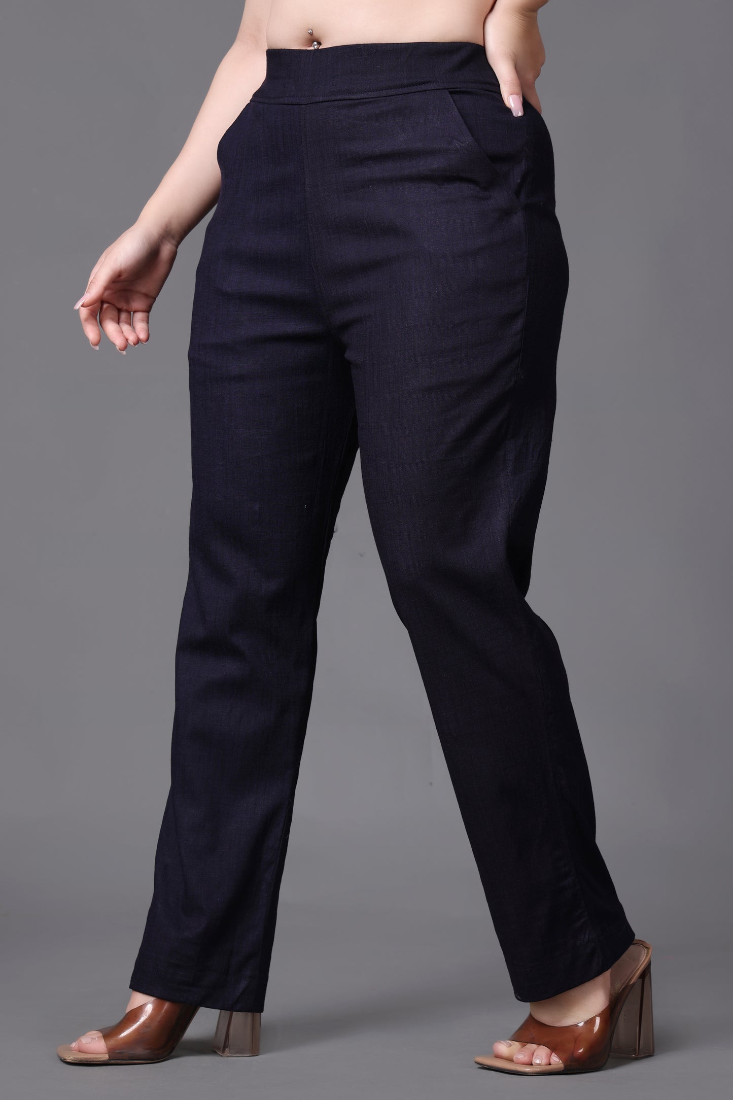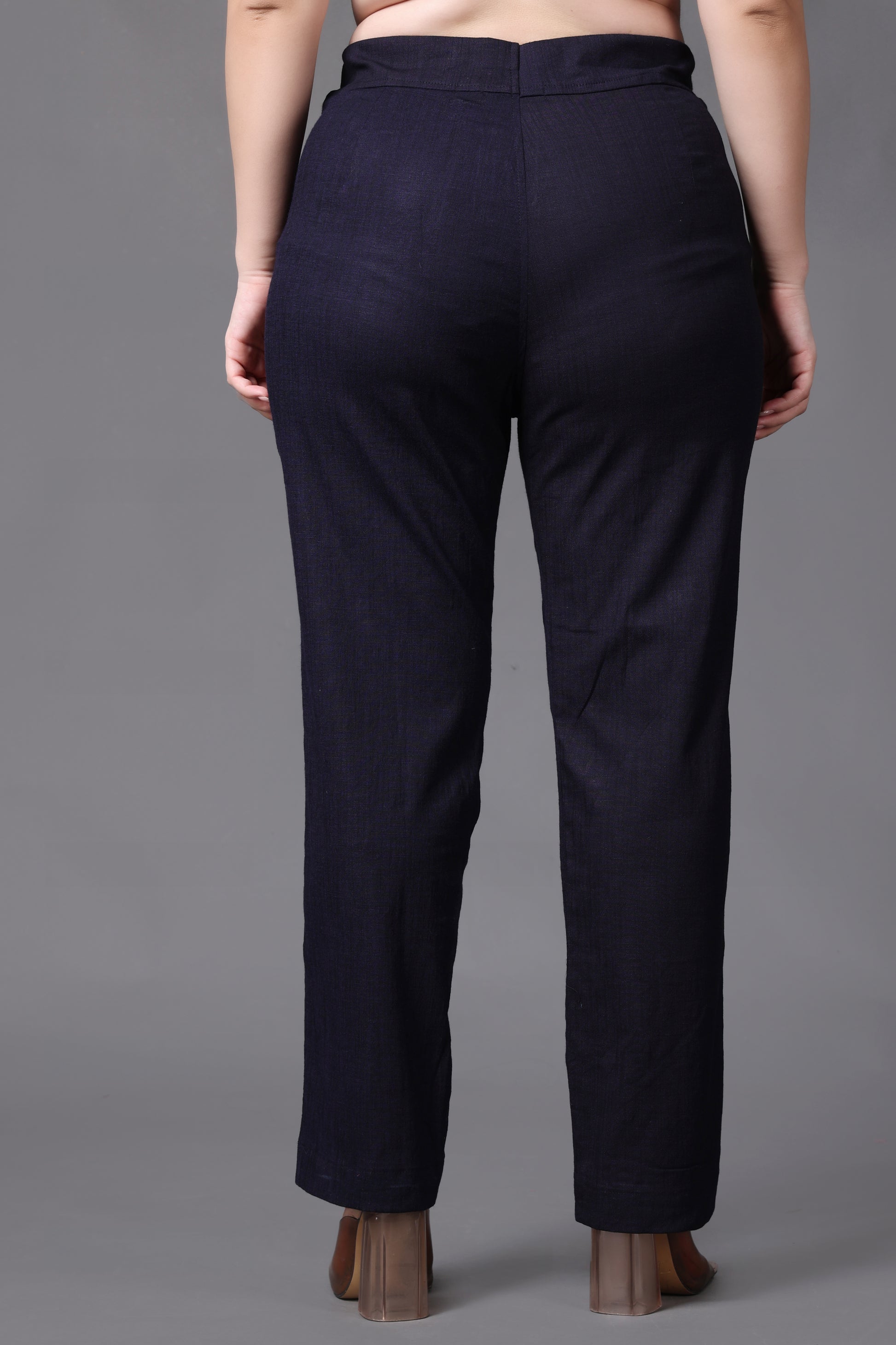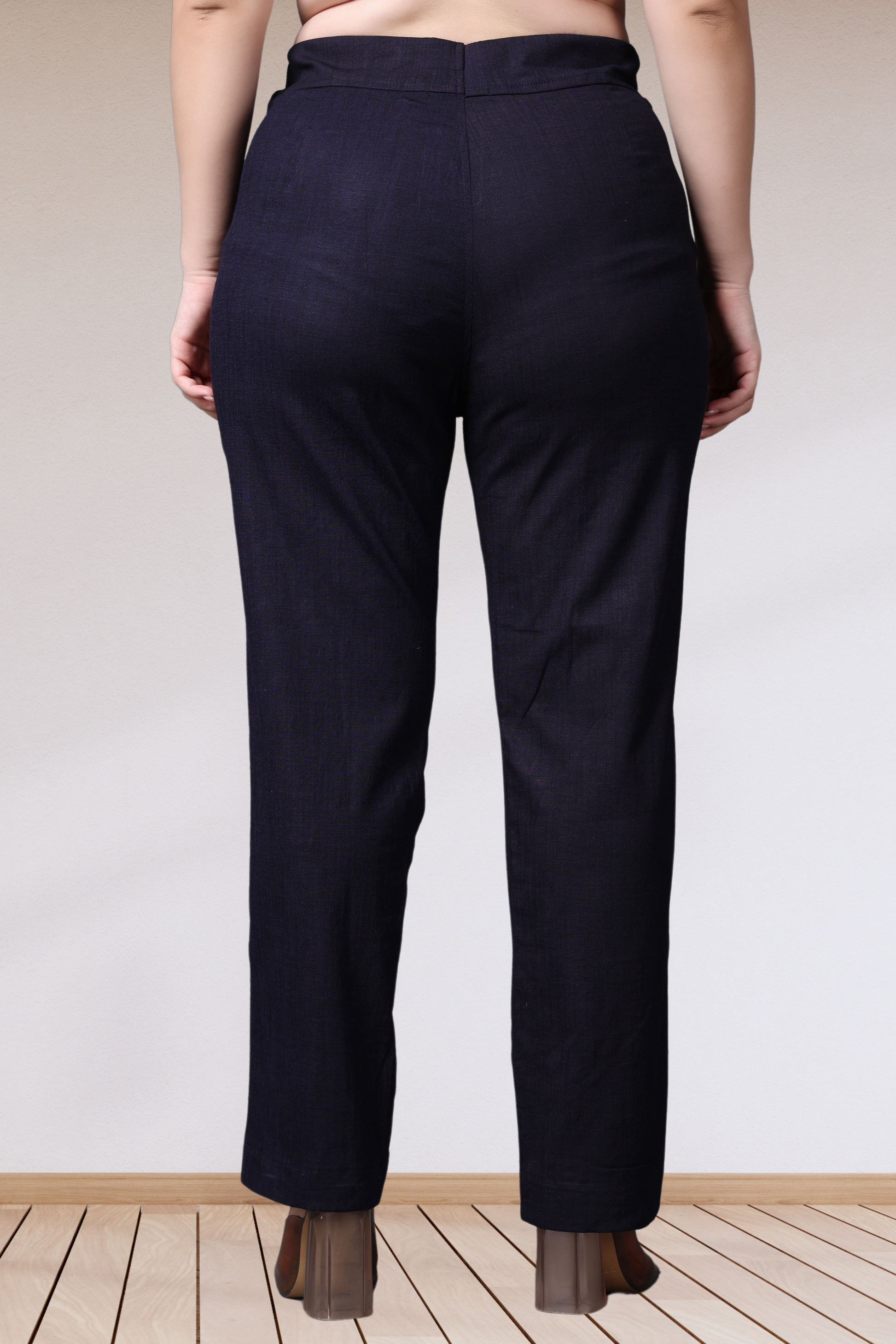 Navy Lycra Slub Pants
