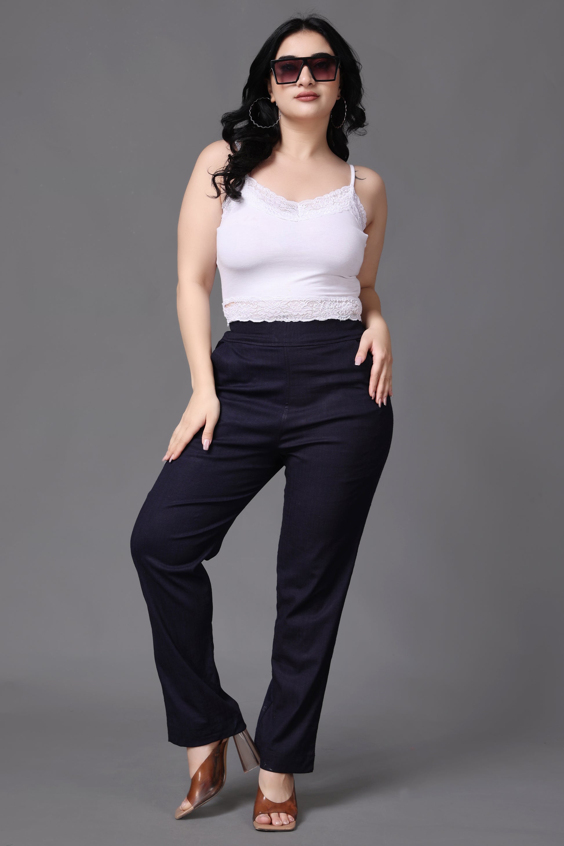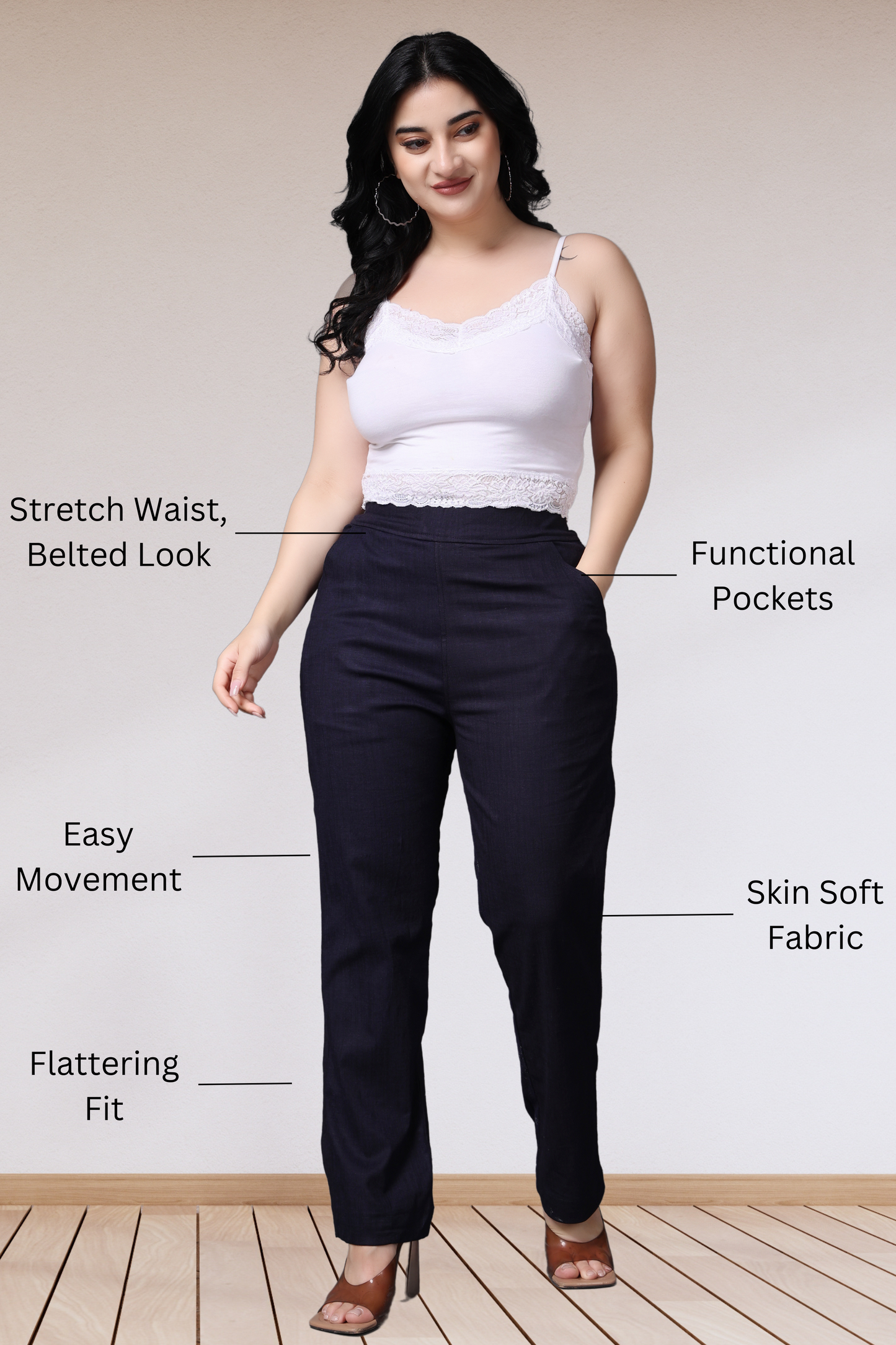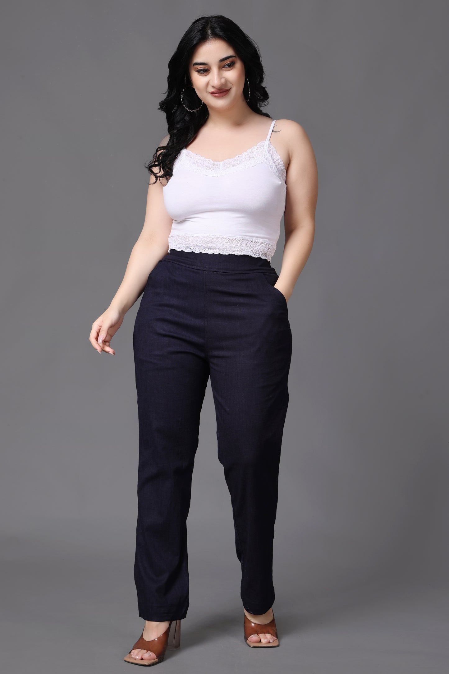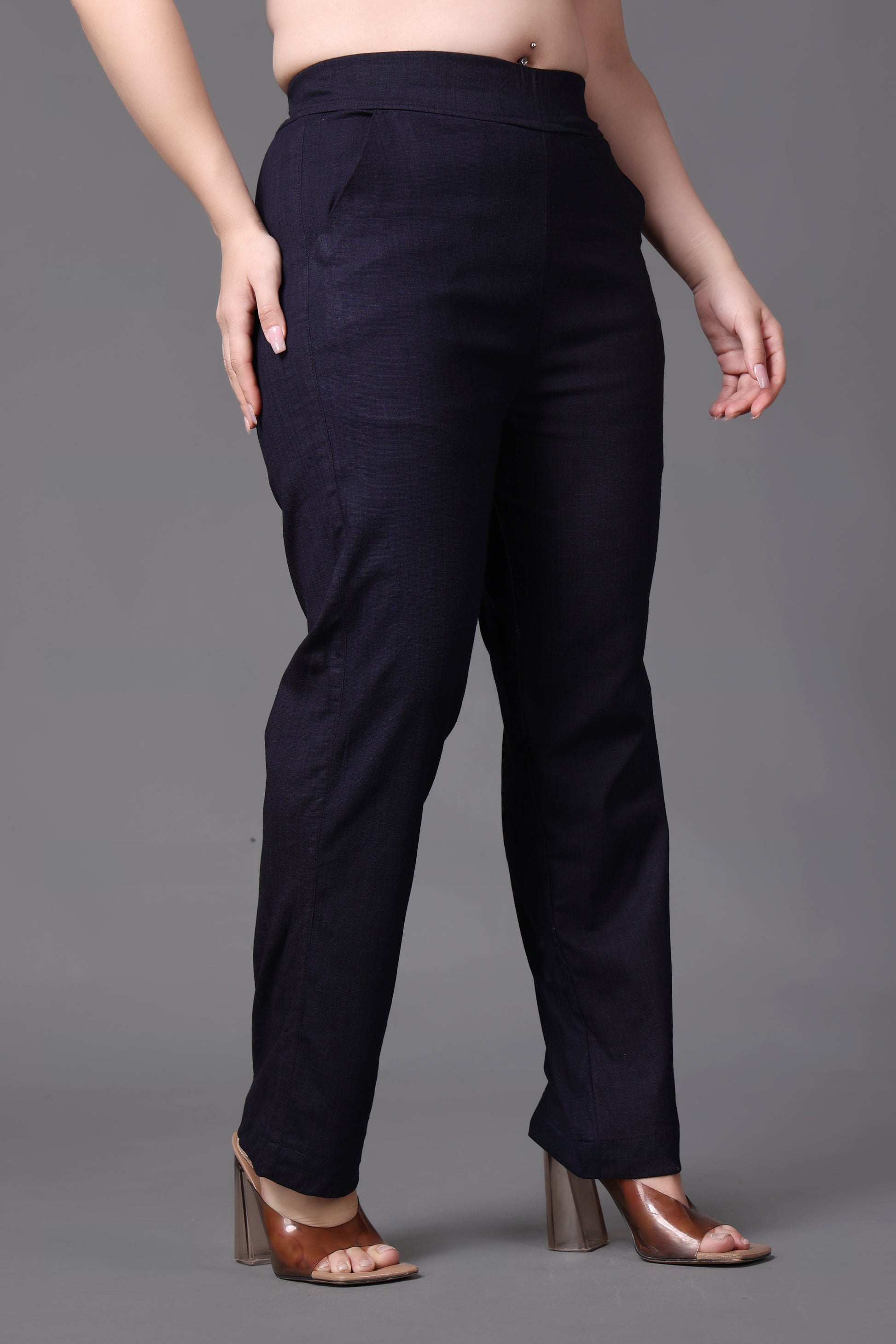 Navy Lycra Slub Pants