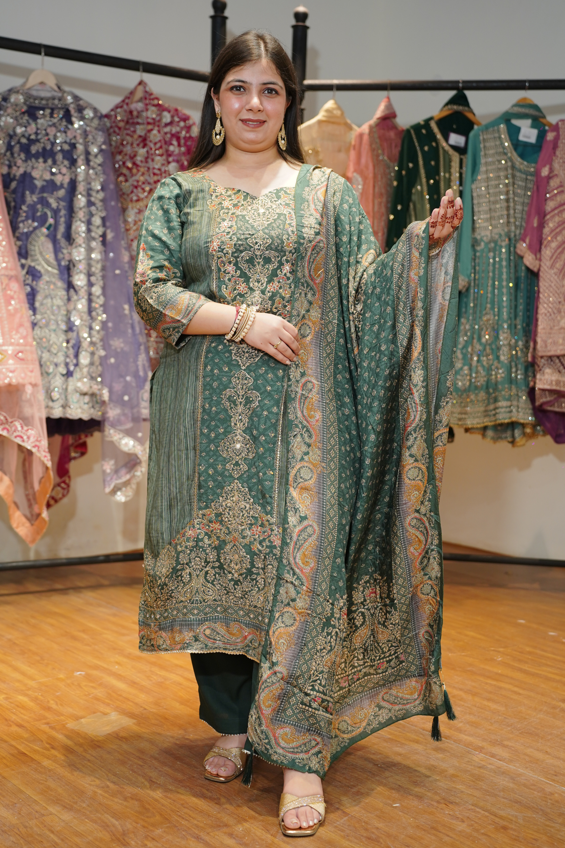 - Gorgeous Muslin Suit in Dusty Green Color