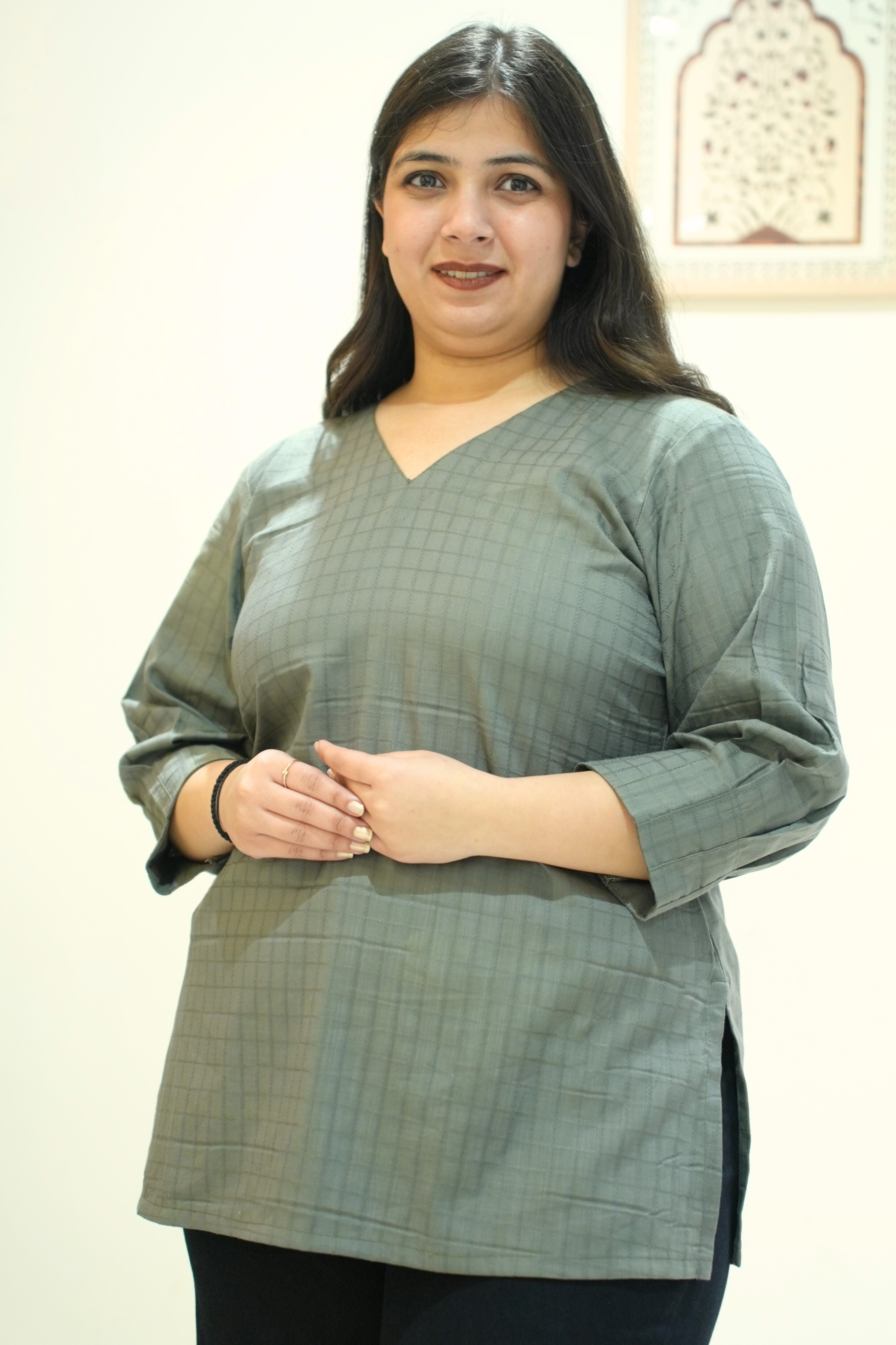 Olive Willow Self Checked Cotton Top