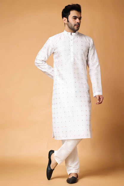 - Mandarin Neckline with Half Button Closure & Full Sleeves