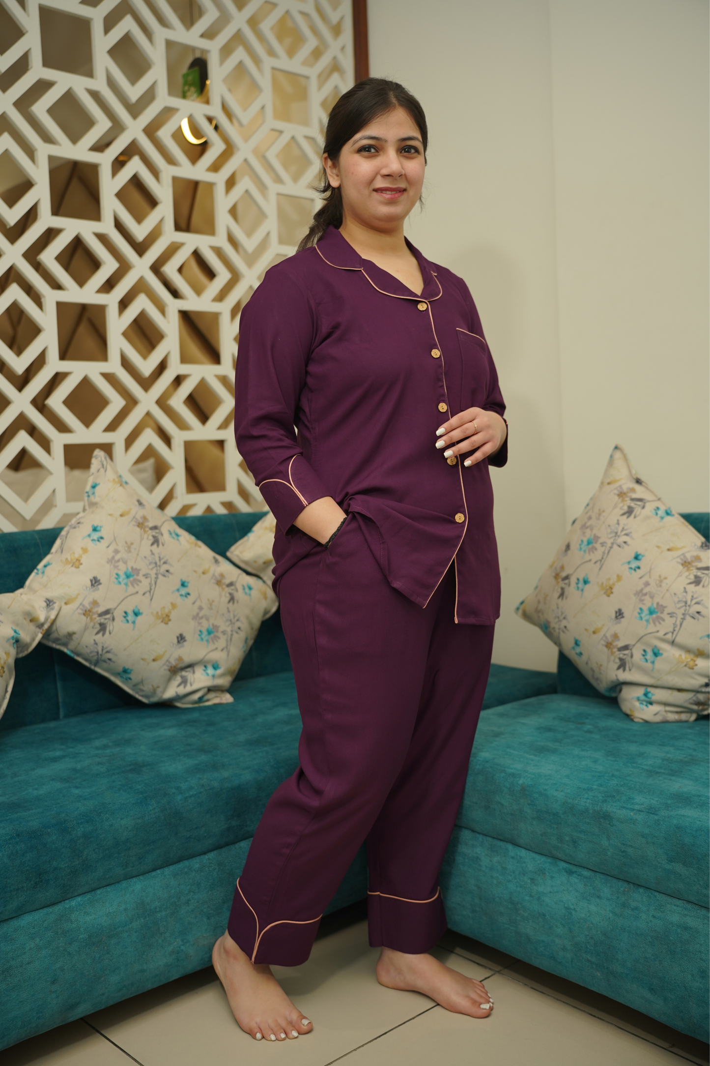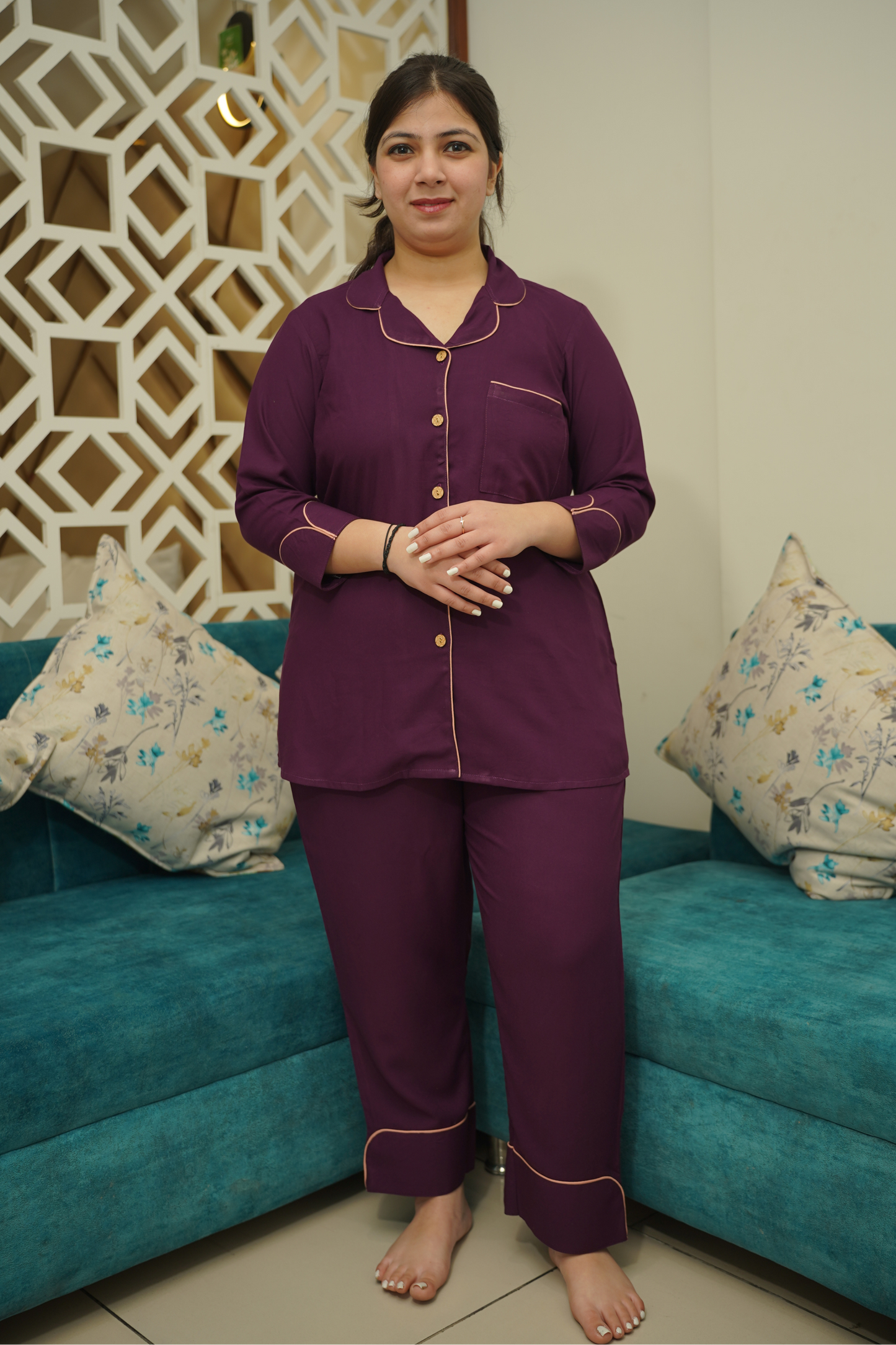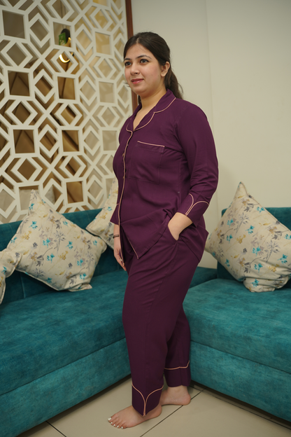 - Plum Whisper Night Suit made from Cotton fabric