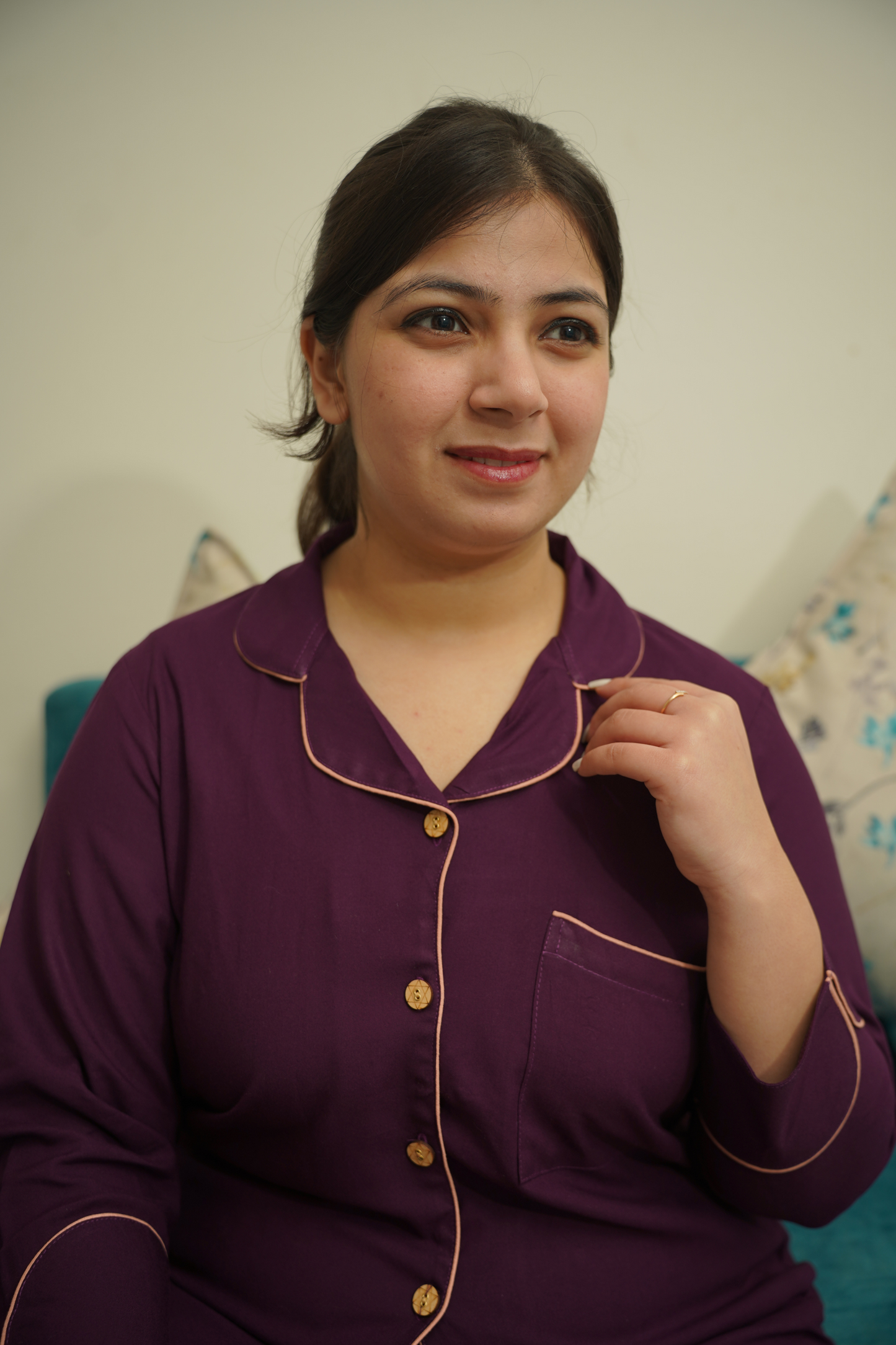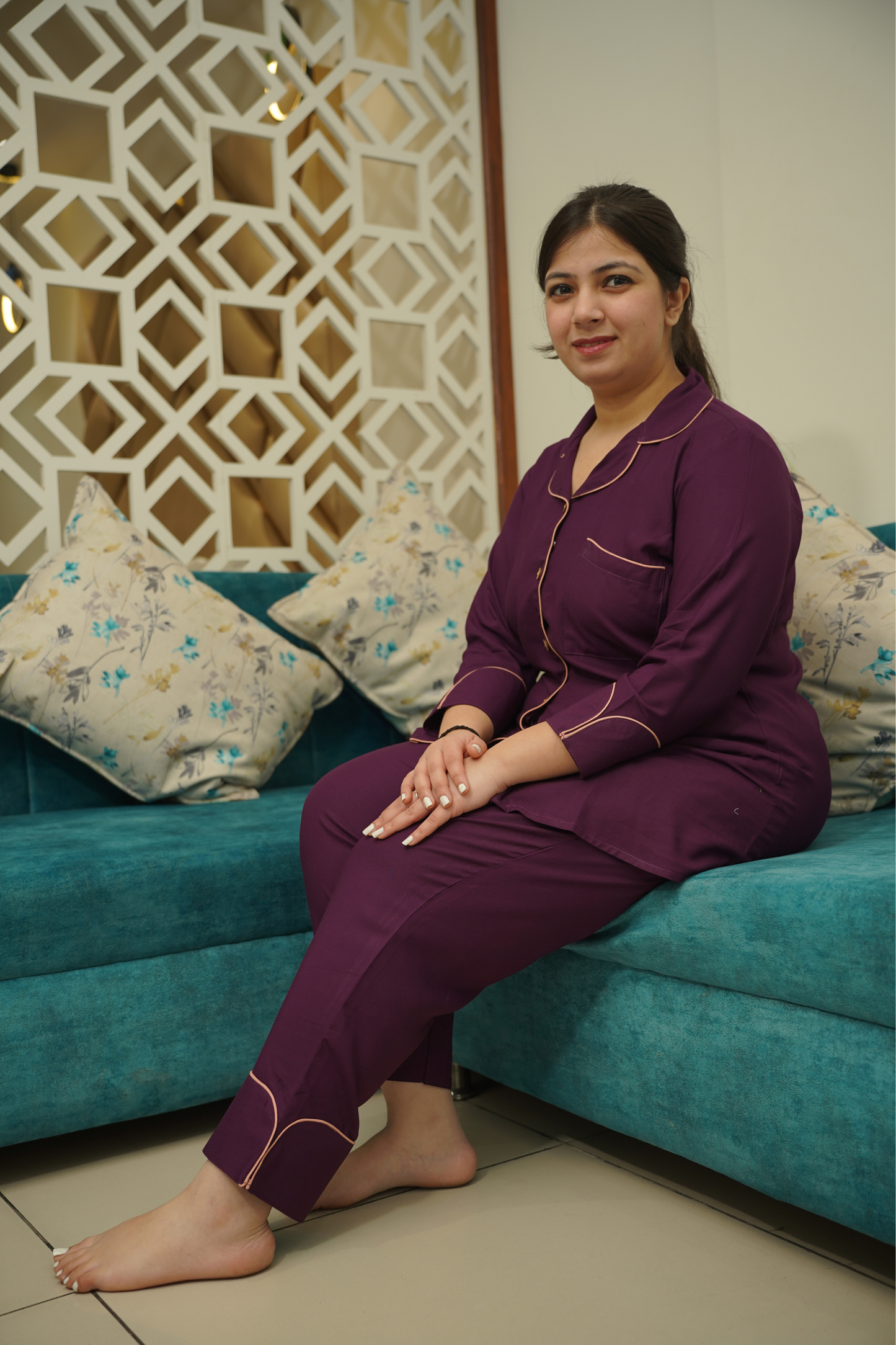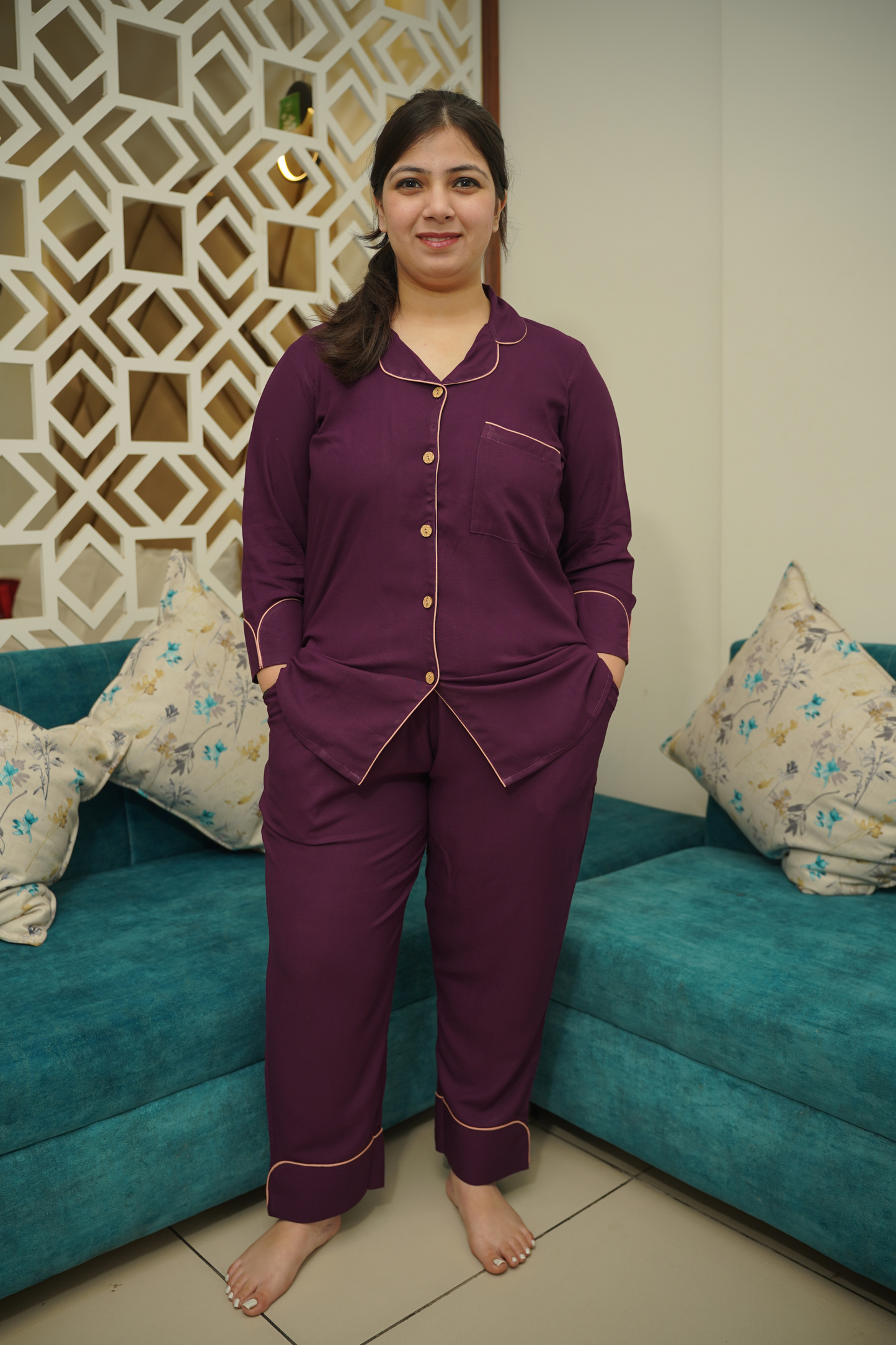 - Plum Whisper Night Suit made from Cotton fabric