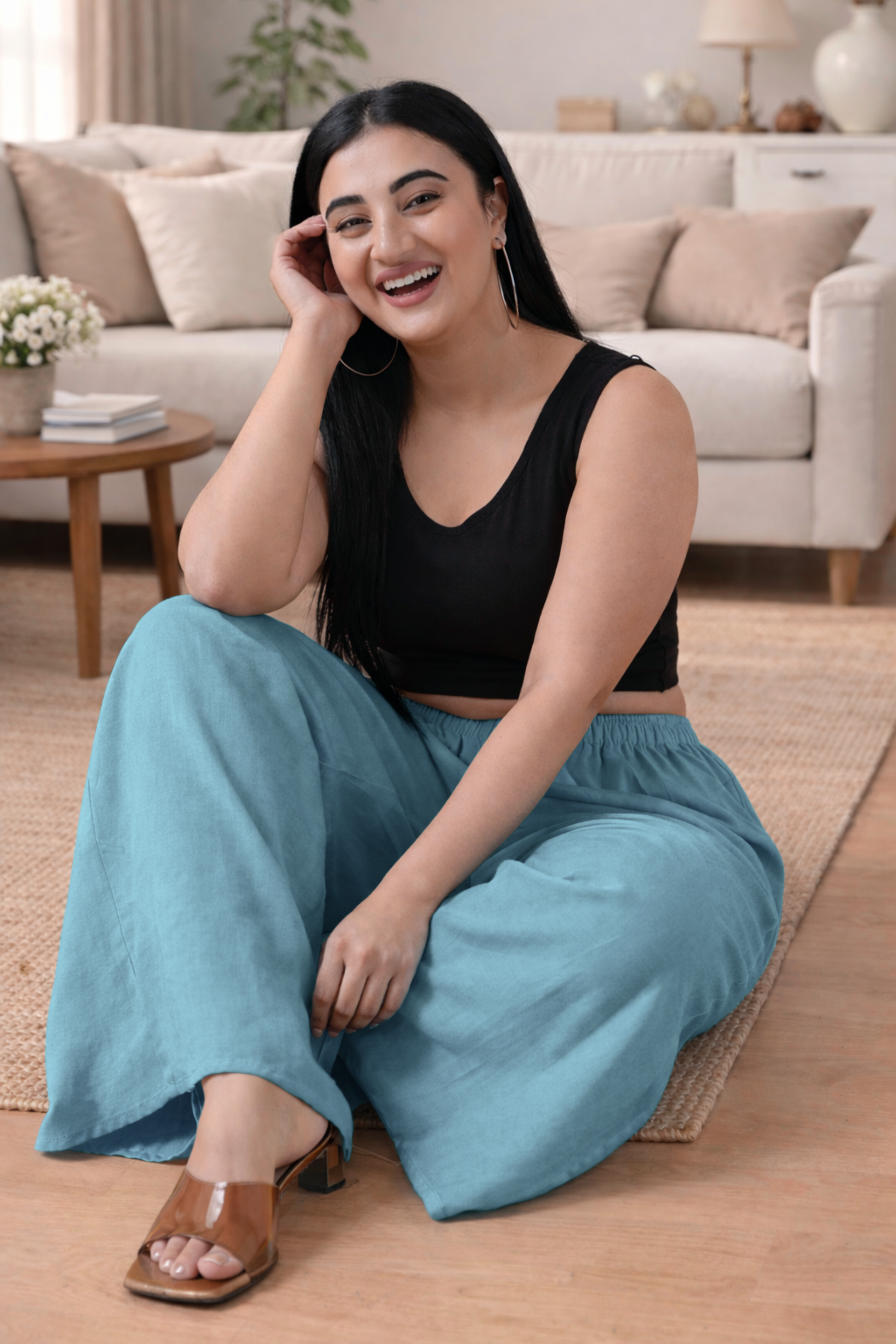 Powder Blue Rayon Loose Palazzo