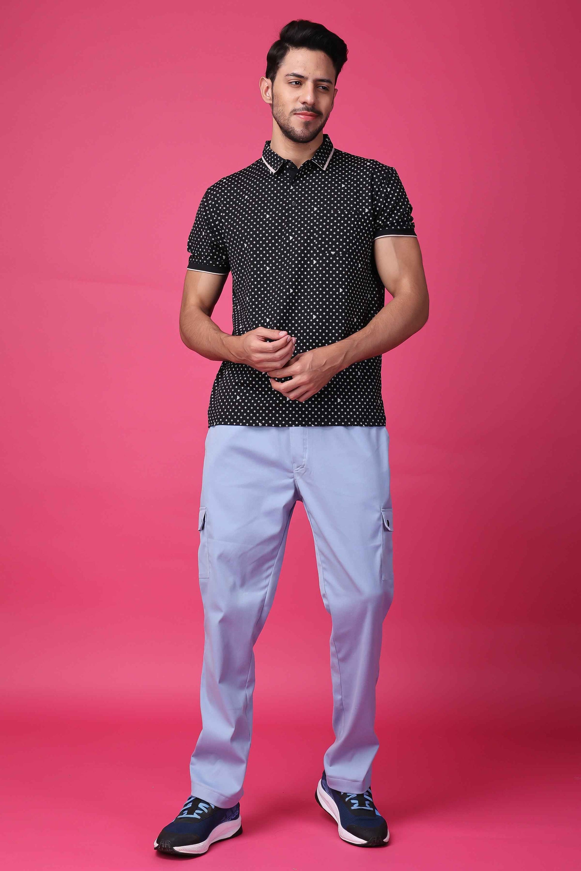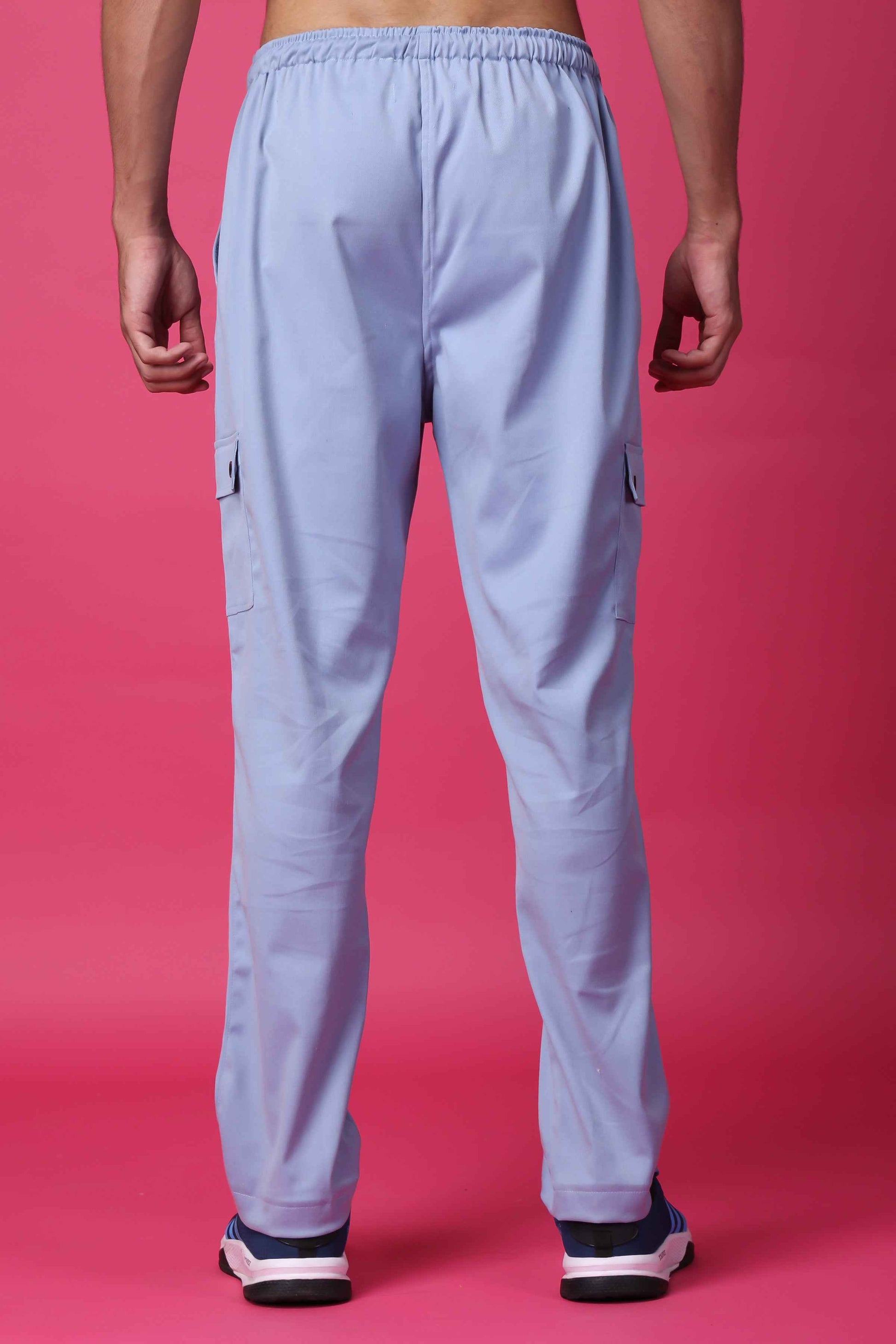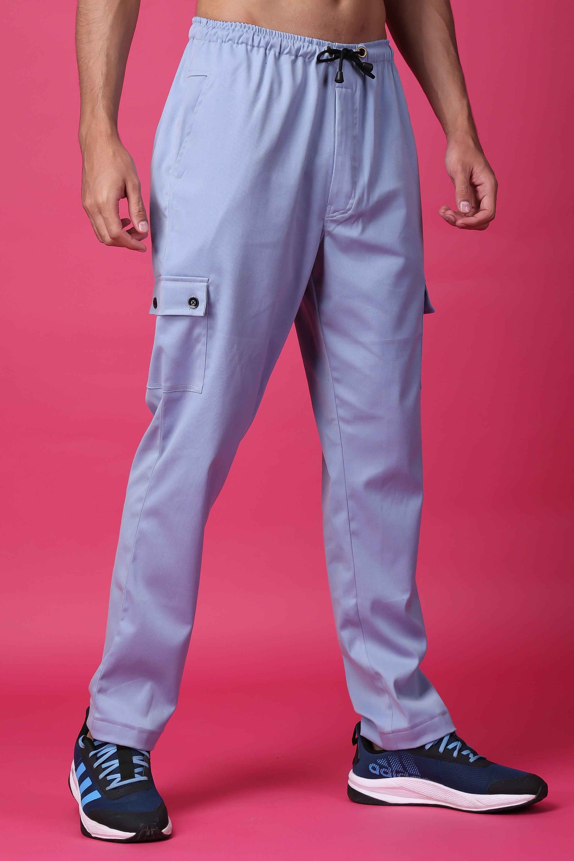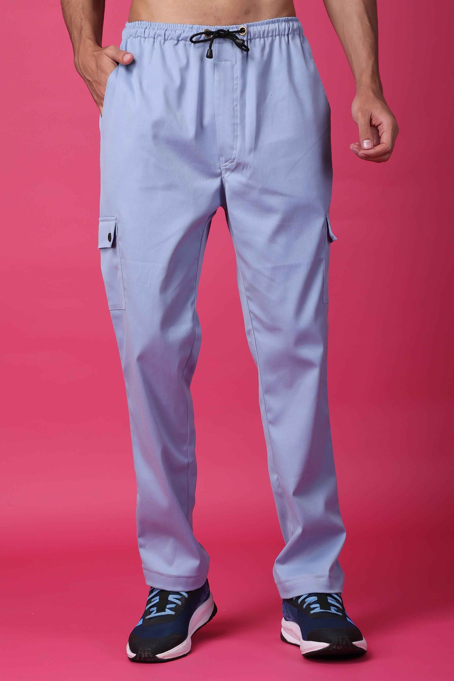 Introducing our Powder Blue Stretchable Cargo, the perfect blend of style and comfort. Crafted with care from high-quality lycra fabric, these cargo pants offer an exceptional level of stretchability, allowing you to move freely without any restrictions. The full elastic waistband, enhanced with a convenient drawstring, ensures a personalized fit that stays comfortably in place throughout the day. With a total of four pockets, you'll have ample space to carry your essentials while maintaining a sleek and streamlined look.
