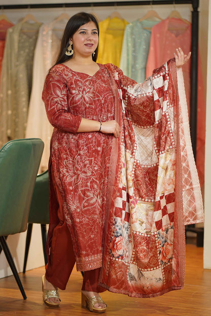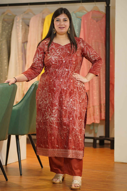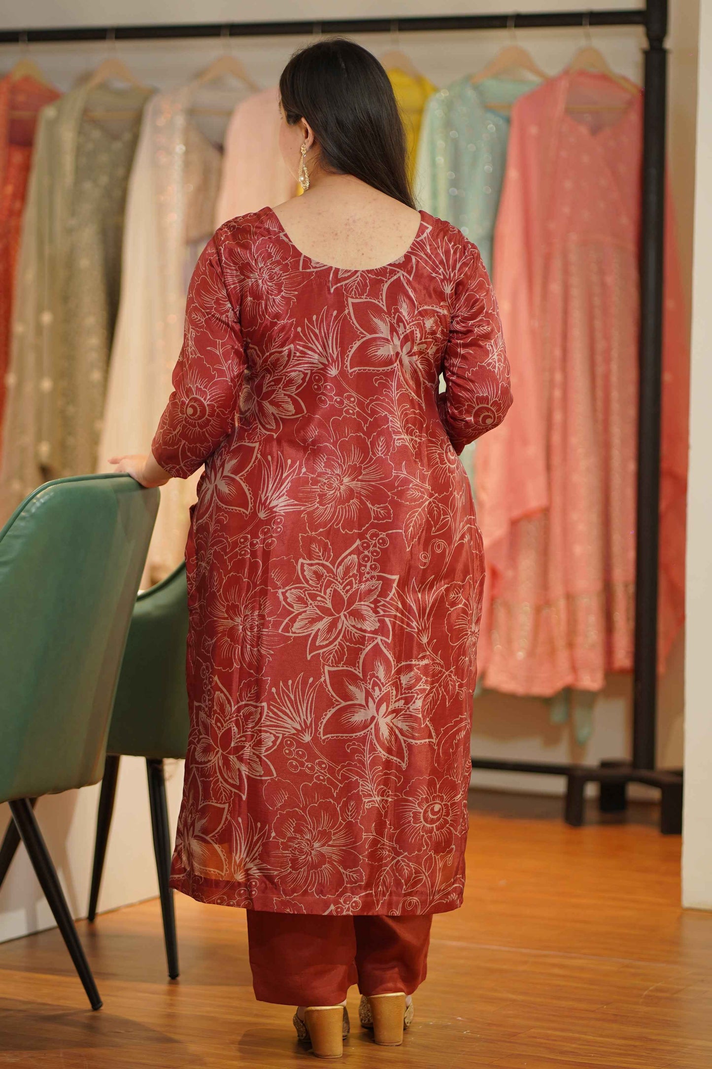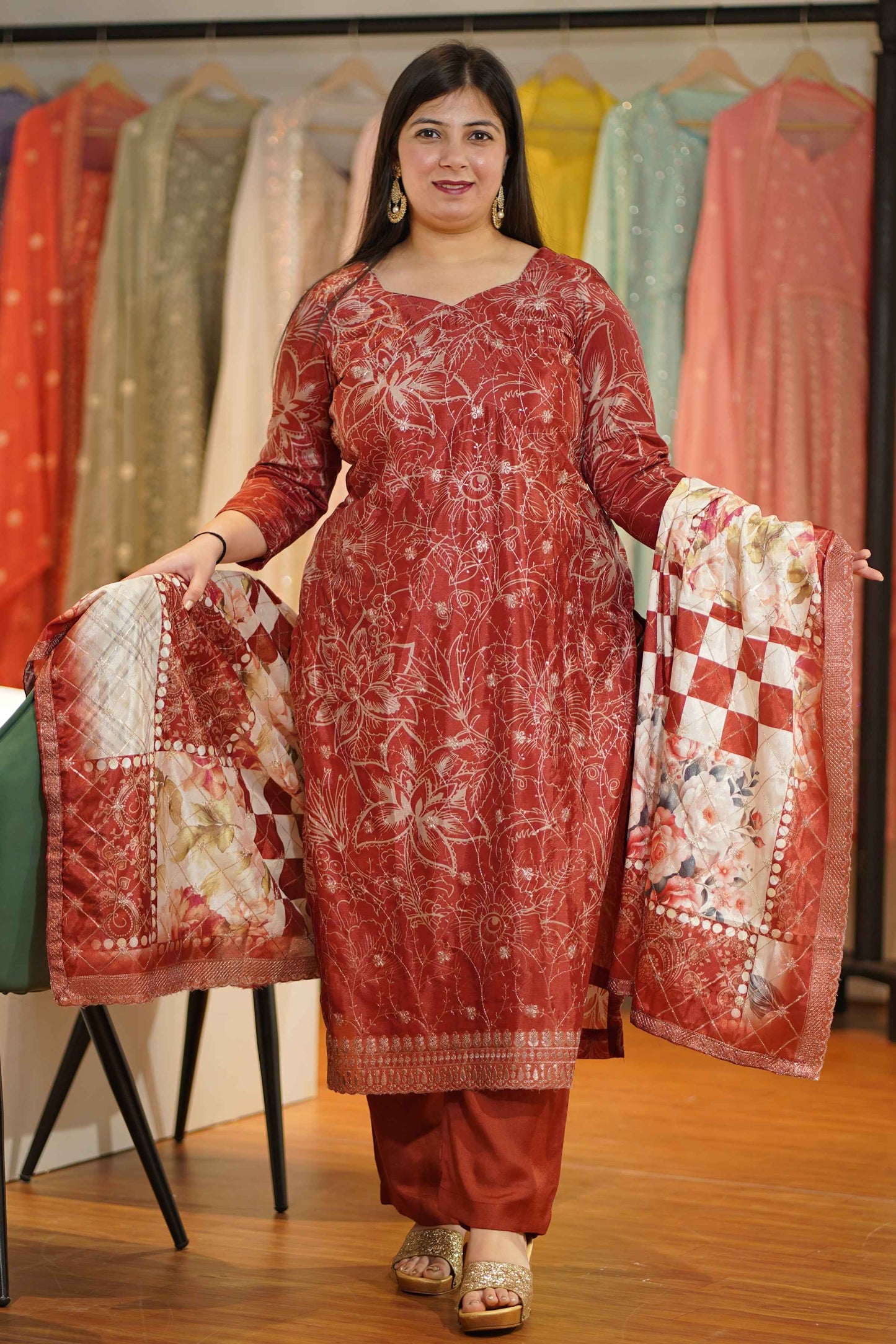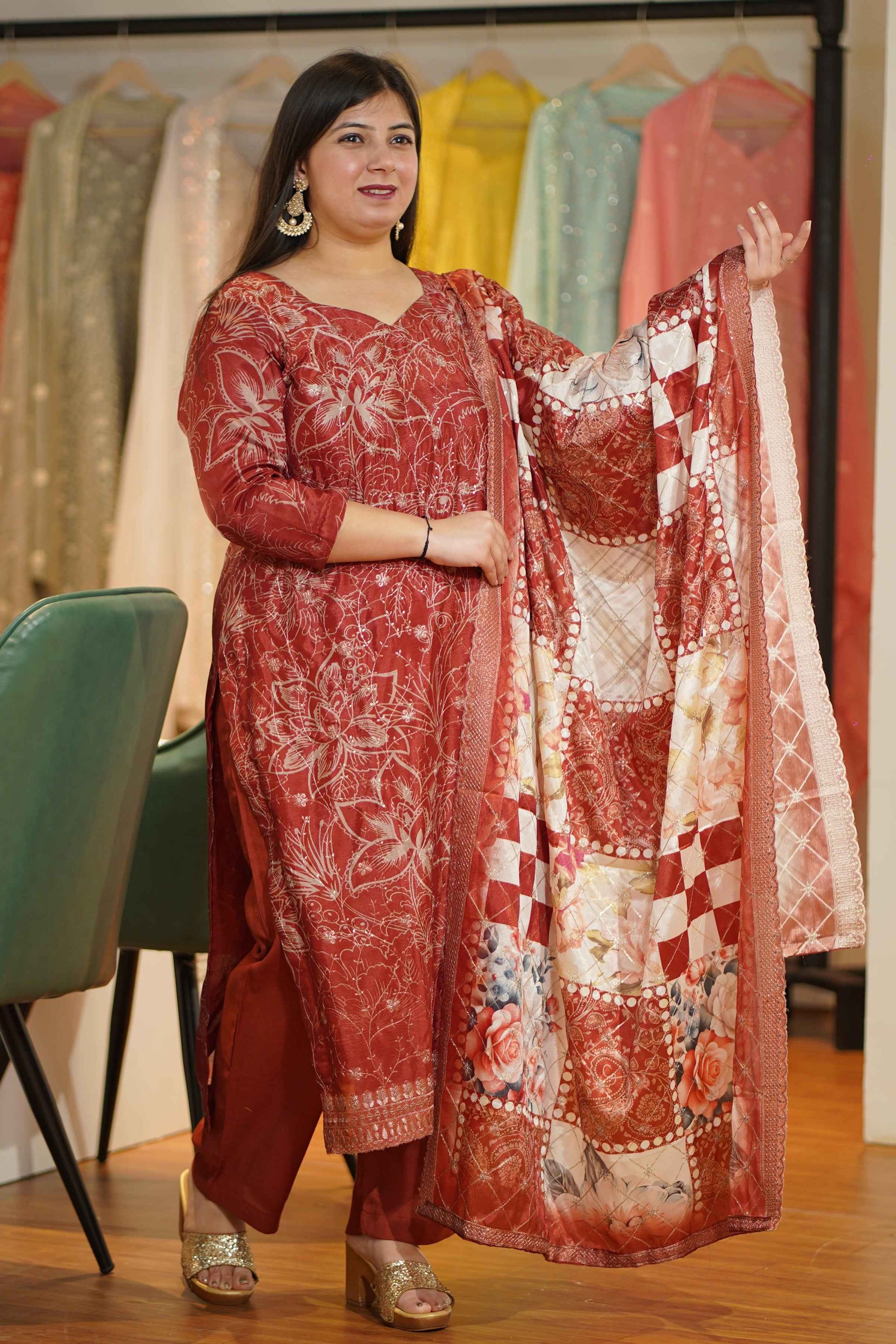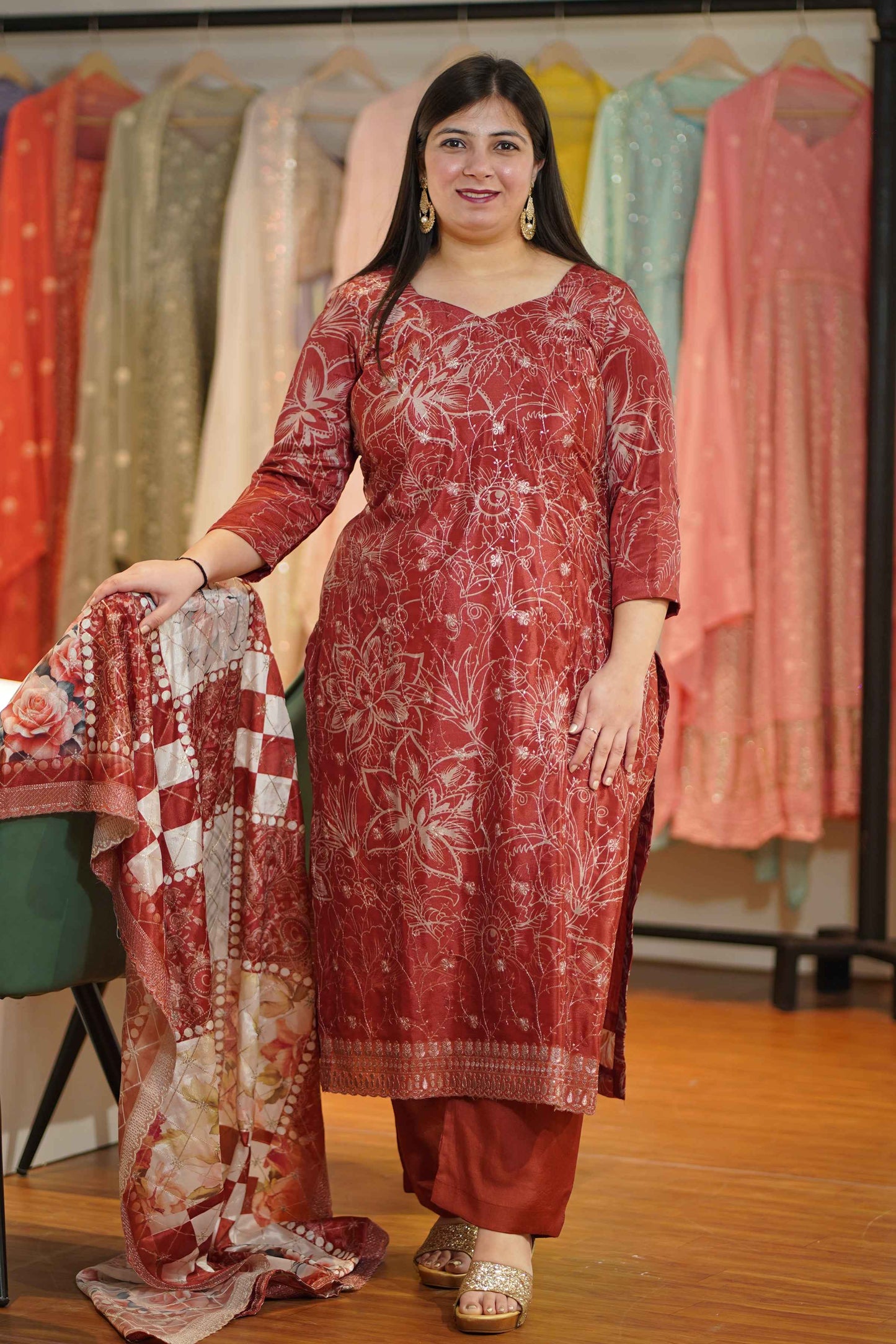 - Shaahi Mehek Floral Suit Set made from Silk Blend fabric