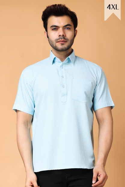 Check out all the freshest styles your closet needs in our men's clothing range. Get a stunning look by wearing this easy breezy Short Kurta crafted with Cotton Blend material. The Kurta features a collared neckline, button-up placket, & half sleeves. This Short Kurta will enhance your casual collection and will sure become a Summer favorite.
