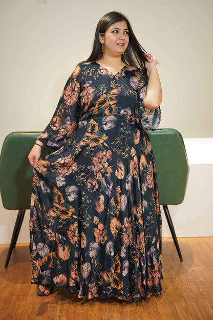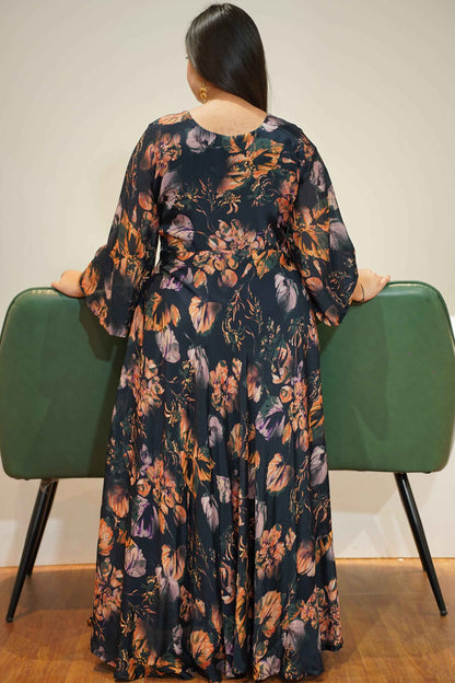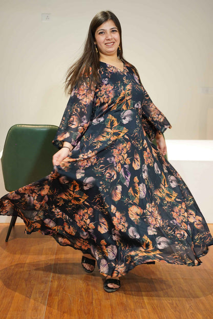 Smoke Blue Floral Chiffon Dress