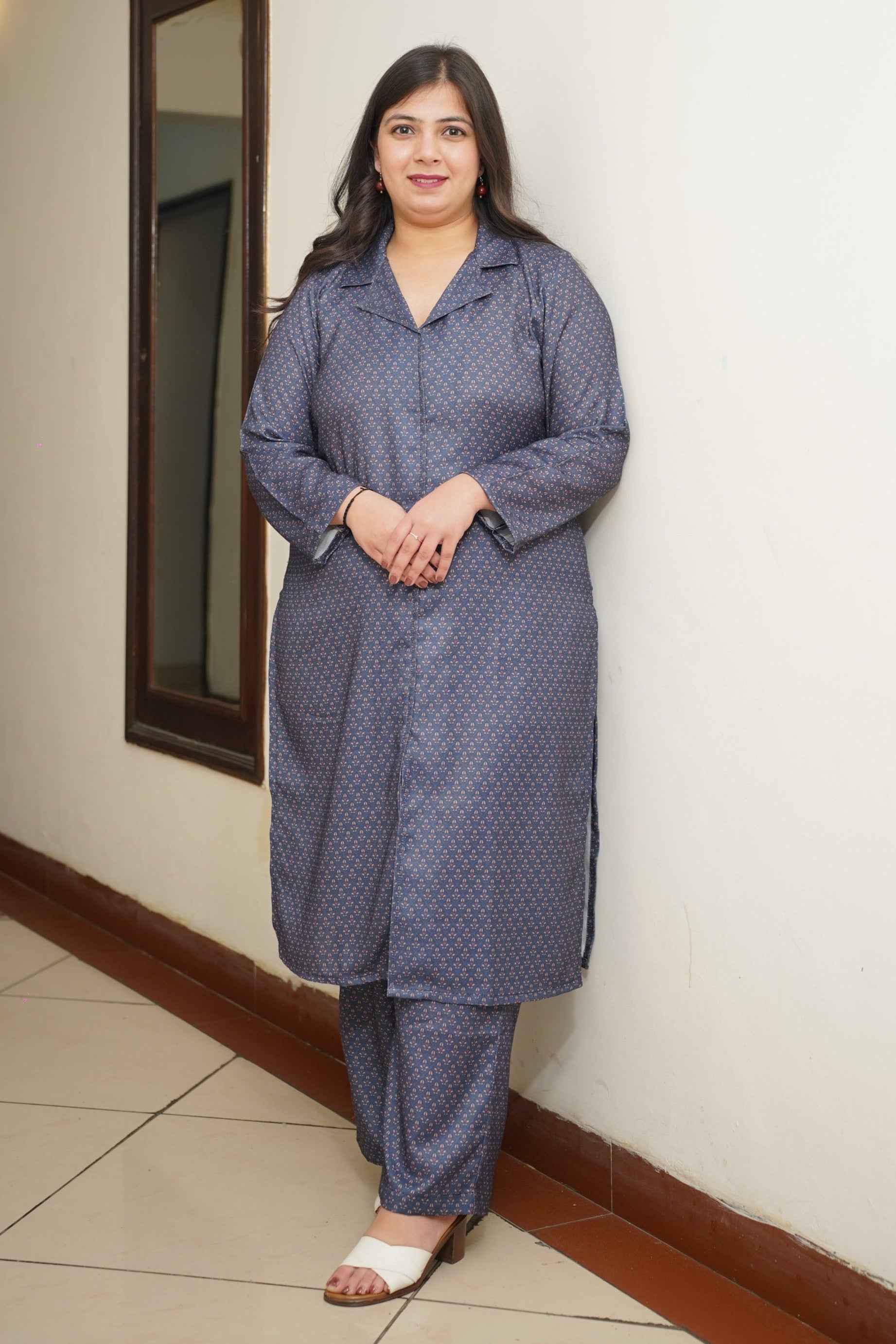 Smoke Blue Woollen Kurta Set