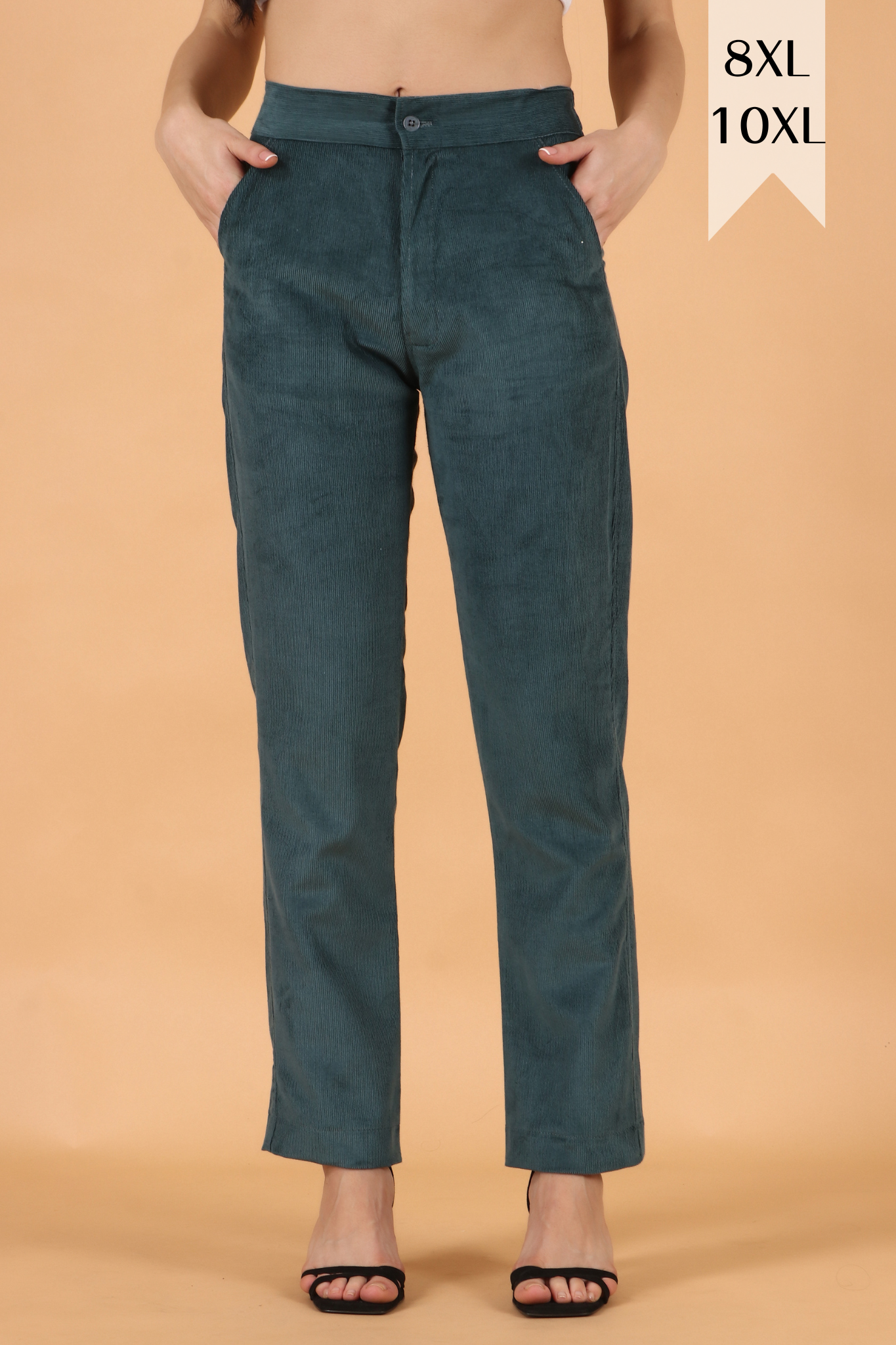 Add a bit of suave to your casual collection with these bold & edgy Corduroy pants cut in a straight silhouette that feature a button closure at the front and elasticized waistline at the back. The double pockets and a slim fit keep you in comfort and style throughout the day. Go for a retro-chic vibe by pairing 'em up with a polka-dotted tie-up shirt.