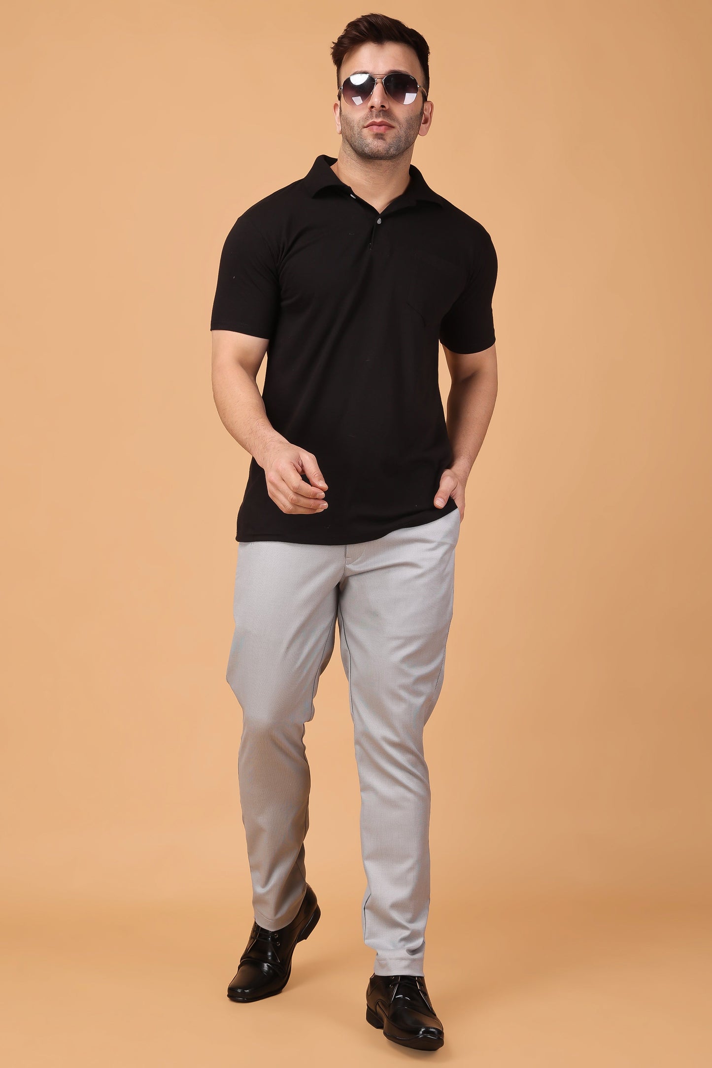 Elevated for both style and comfort, Men's Grey Comfort Fit Trousers, crafted from a Lycra Poly Viscose fabric, feature front belt & back elastic. Ideal for extended meetings or busy workdays, the stretchable material ensures flexibility. The seamless fusion of stretchability, durability, and a unique design makes these trousers an exceptional choice for a distinctive yet classic look with added convenience.