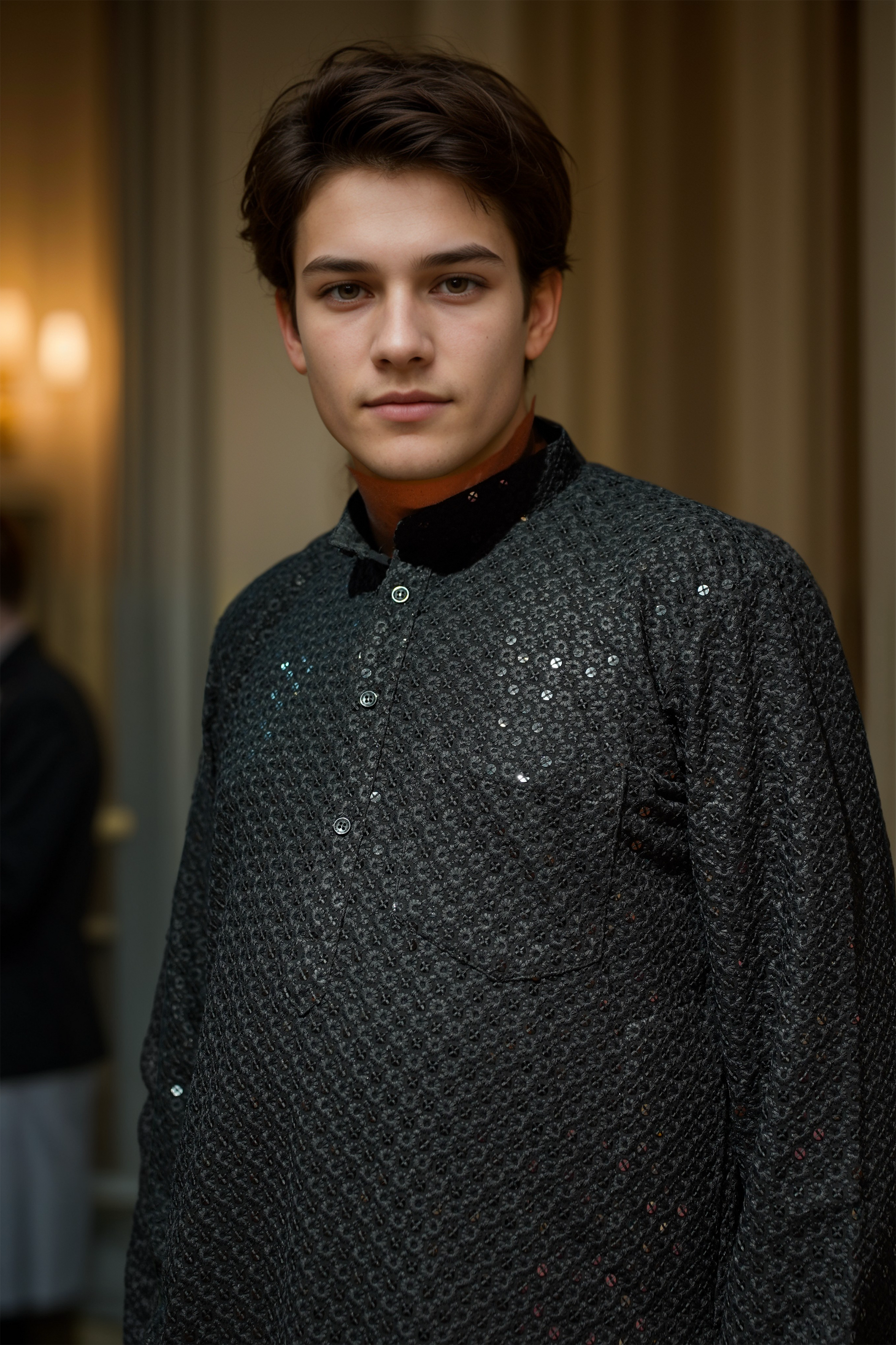 - Black viscose rayon kurta with fine sequin work