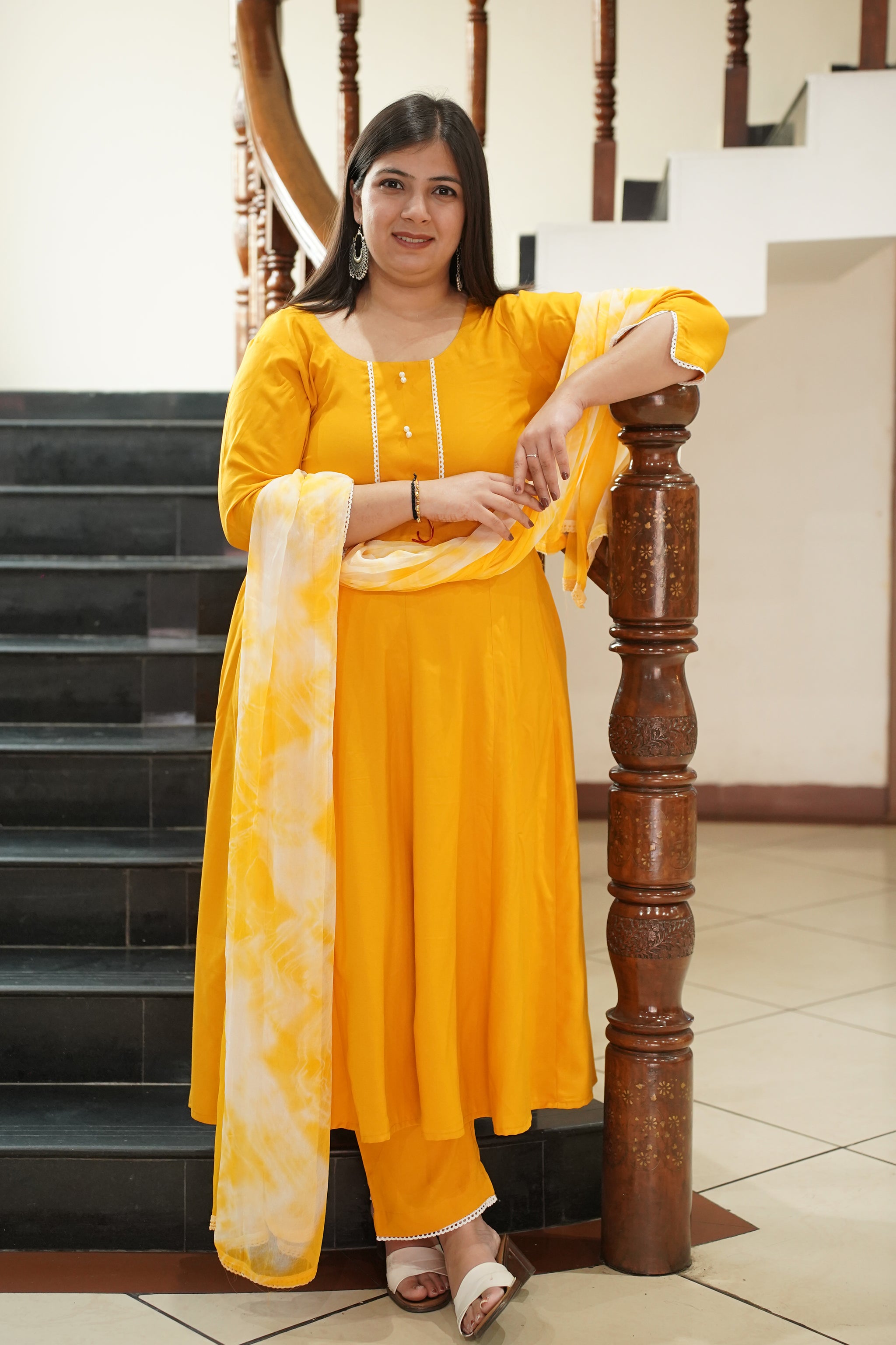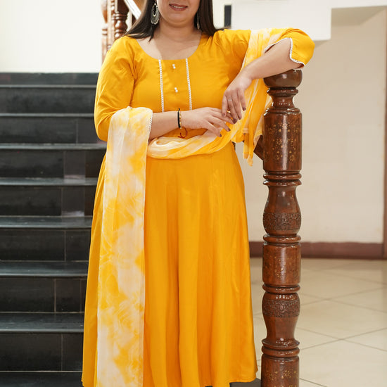 - Deep Yellow Anarkali Suit Set made from Rayon fabric