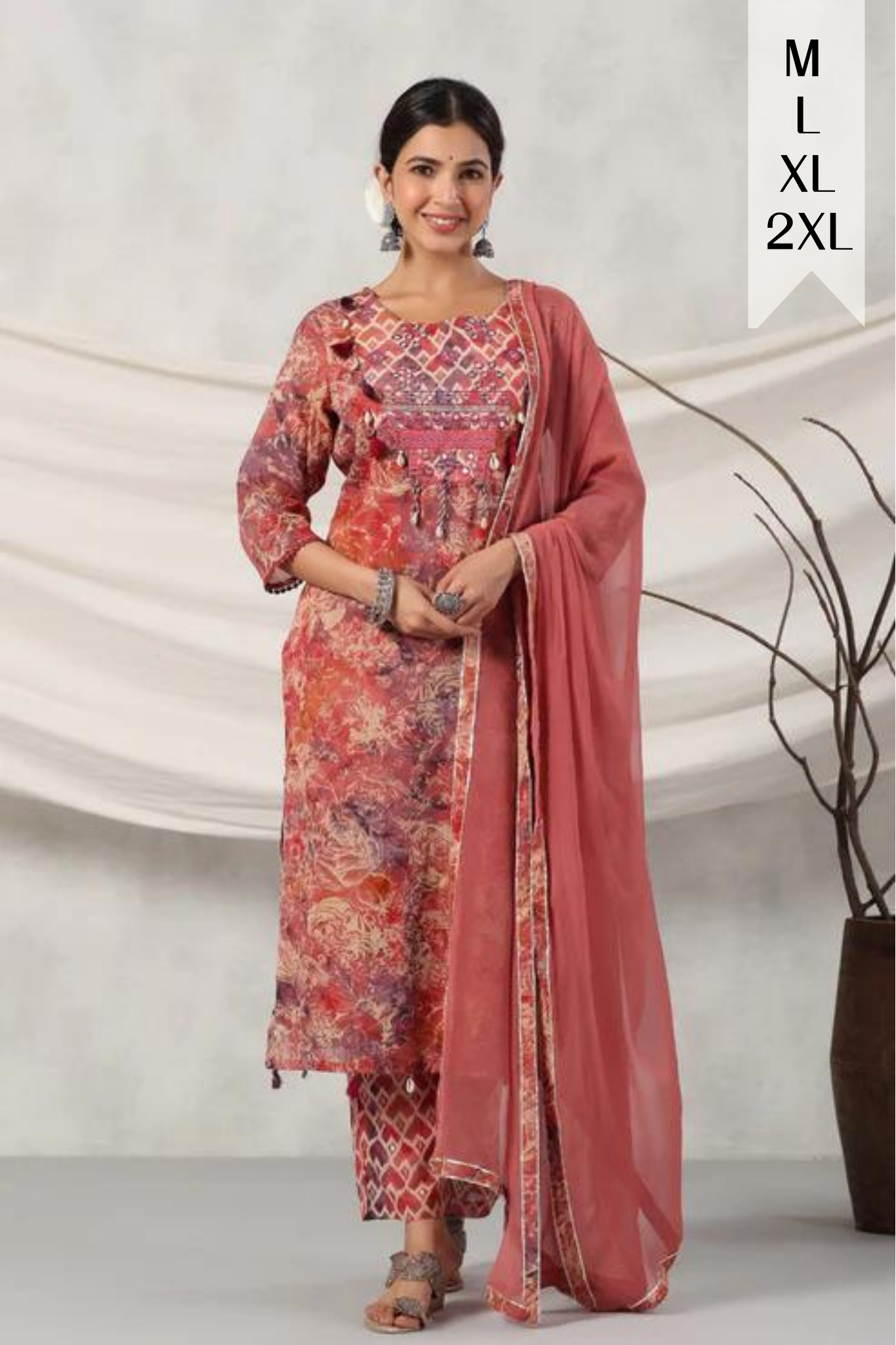 The product is a set of 3- Kurta, Bottom & Chiffon Dupatta.