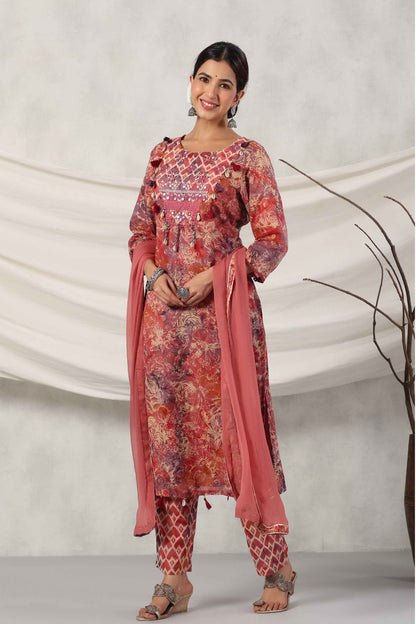 Terracotta Mirrored Cotton Suit Set