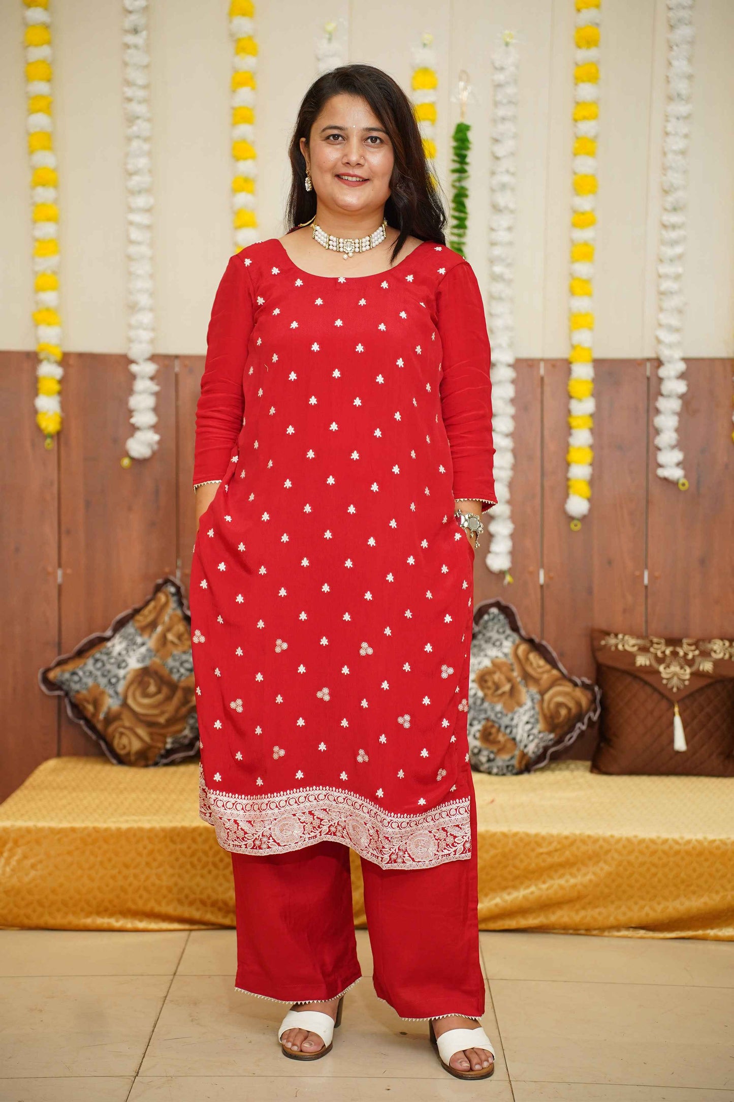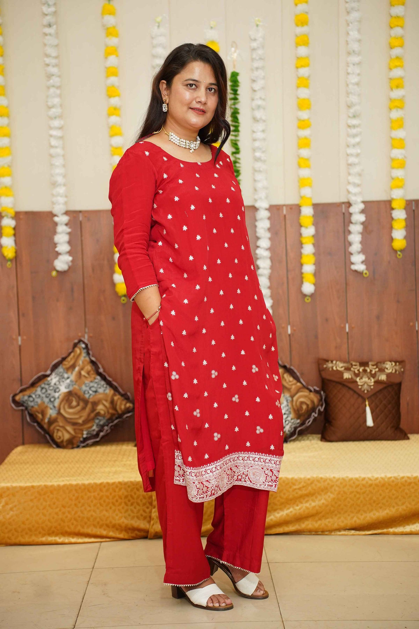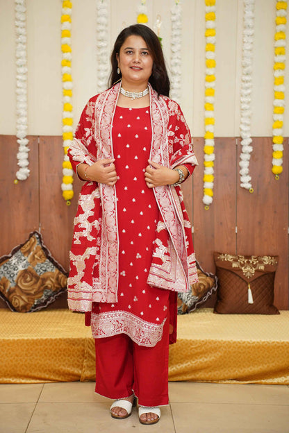 - Red Suit Set made from Crepe fabric