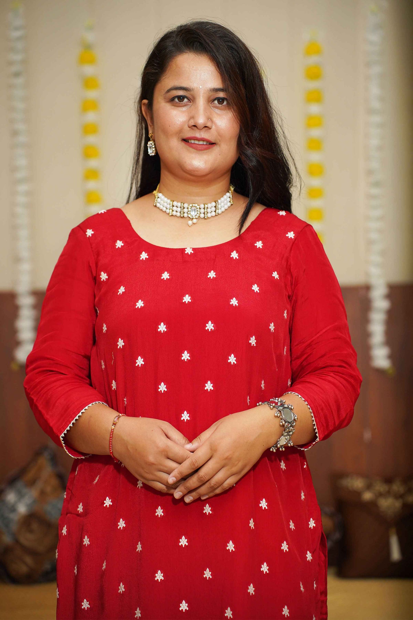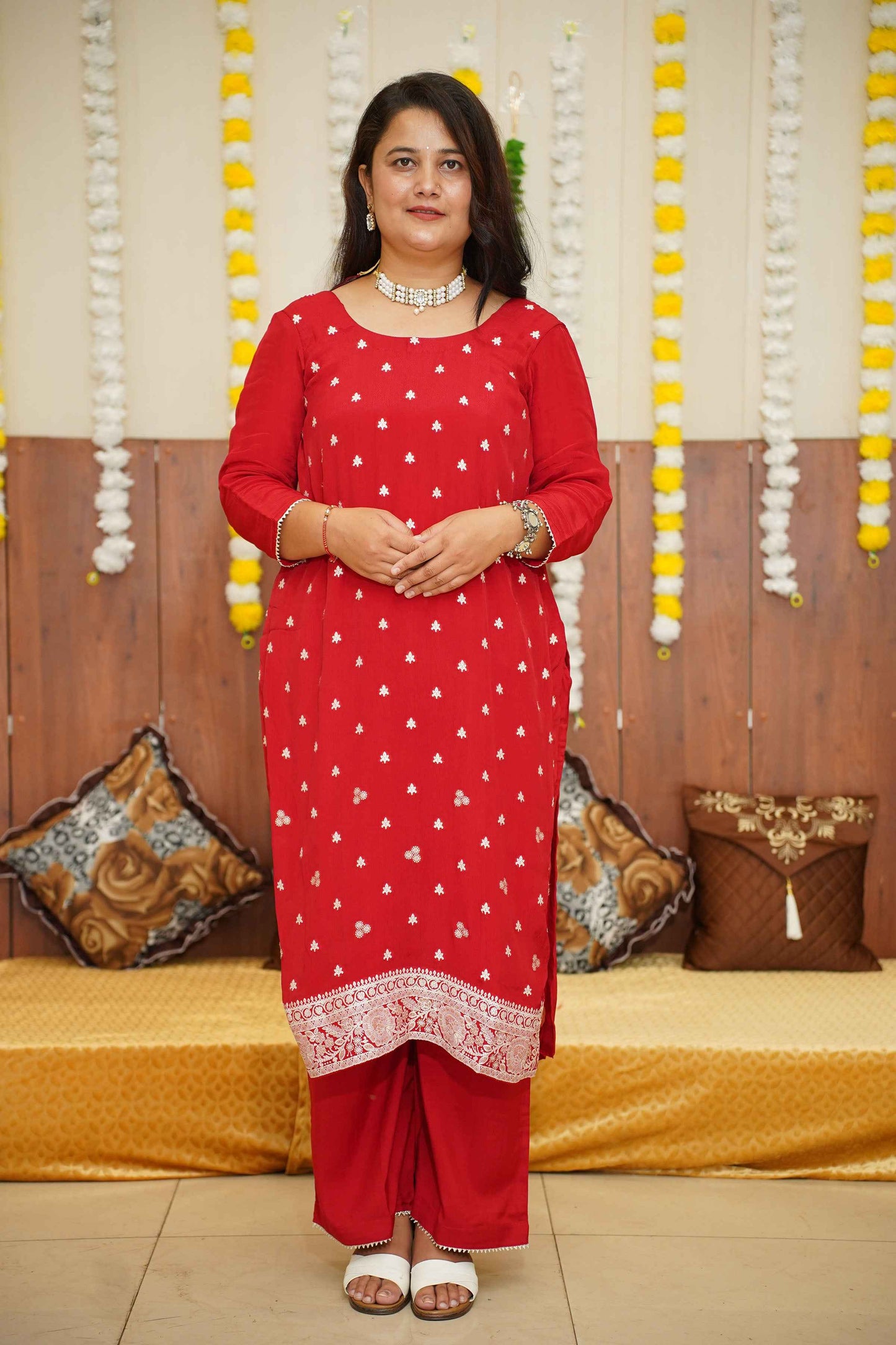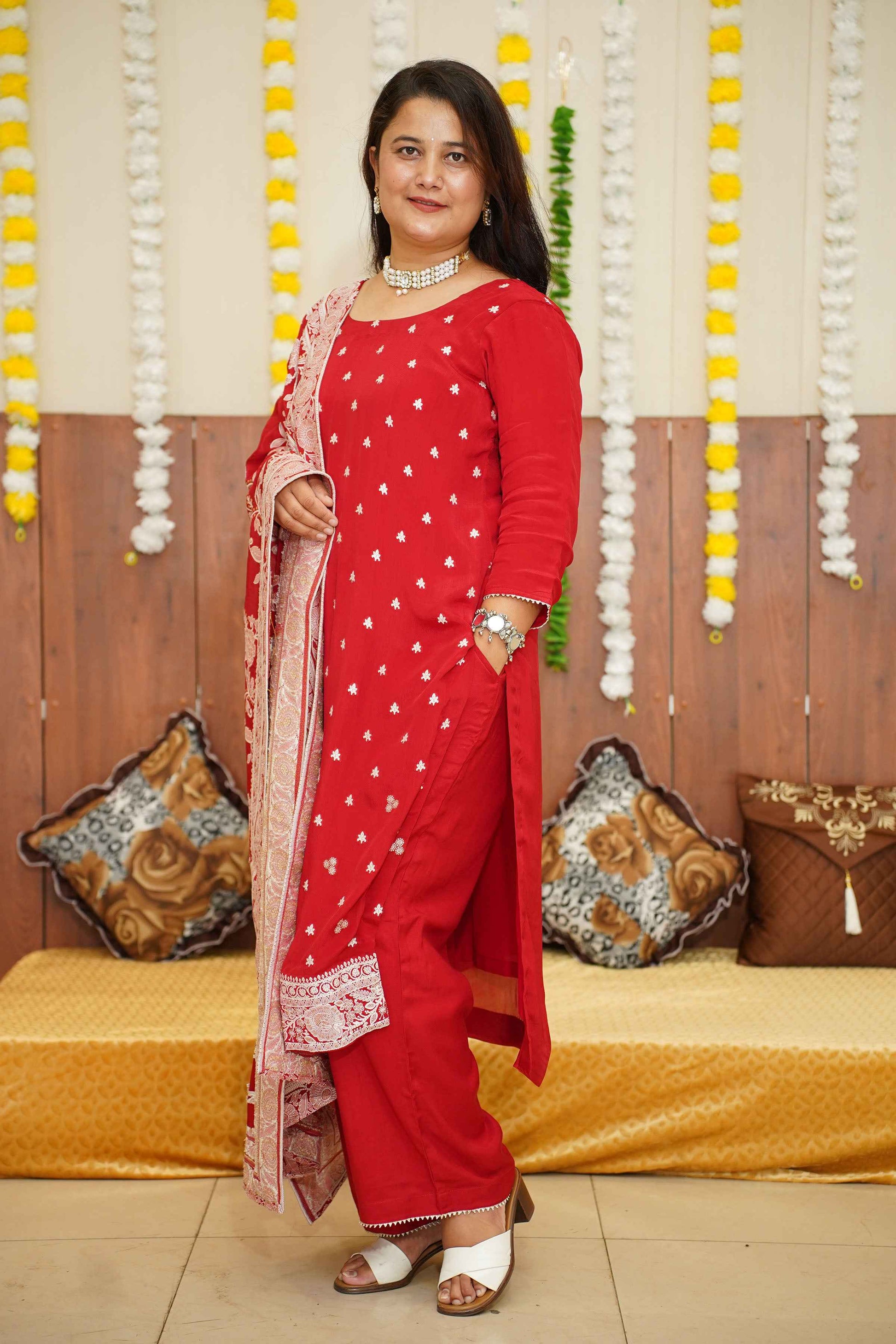 - Red Suit Set made from Crepe fabric