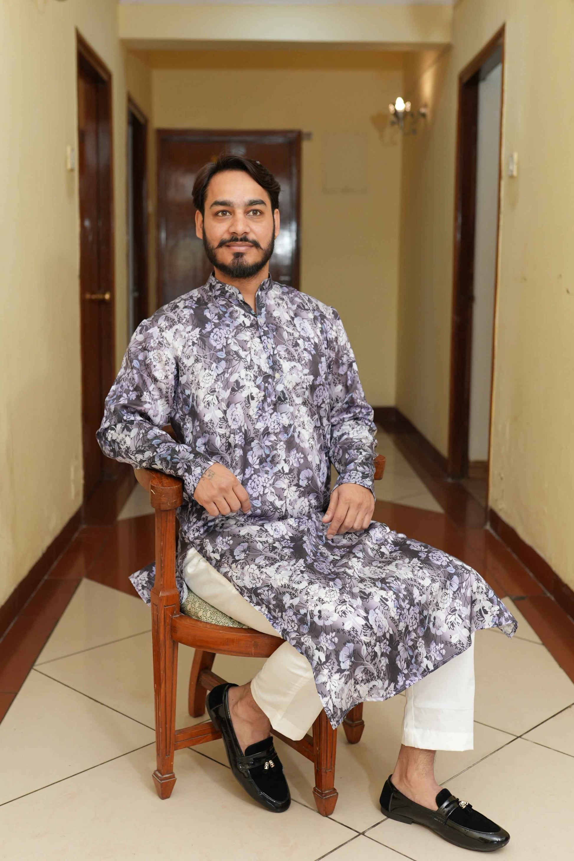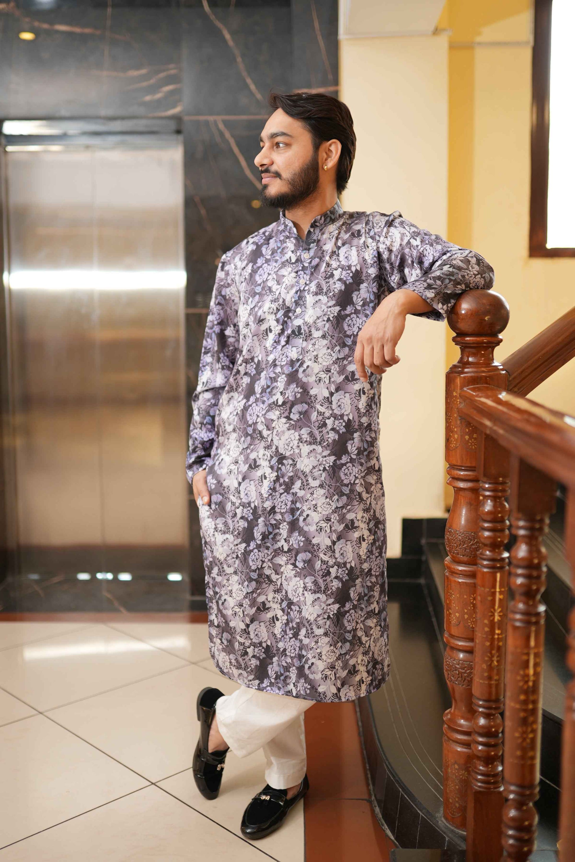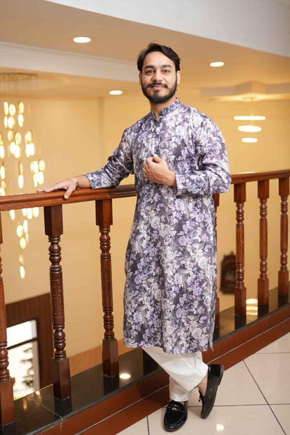 - Mandarin Neckline with Half Button Closure & Full Sleeves