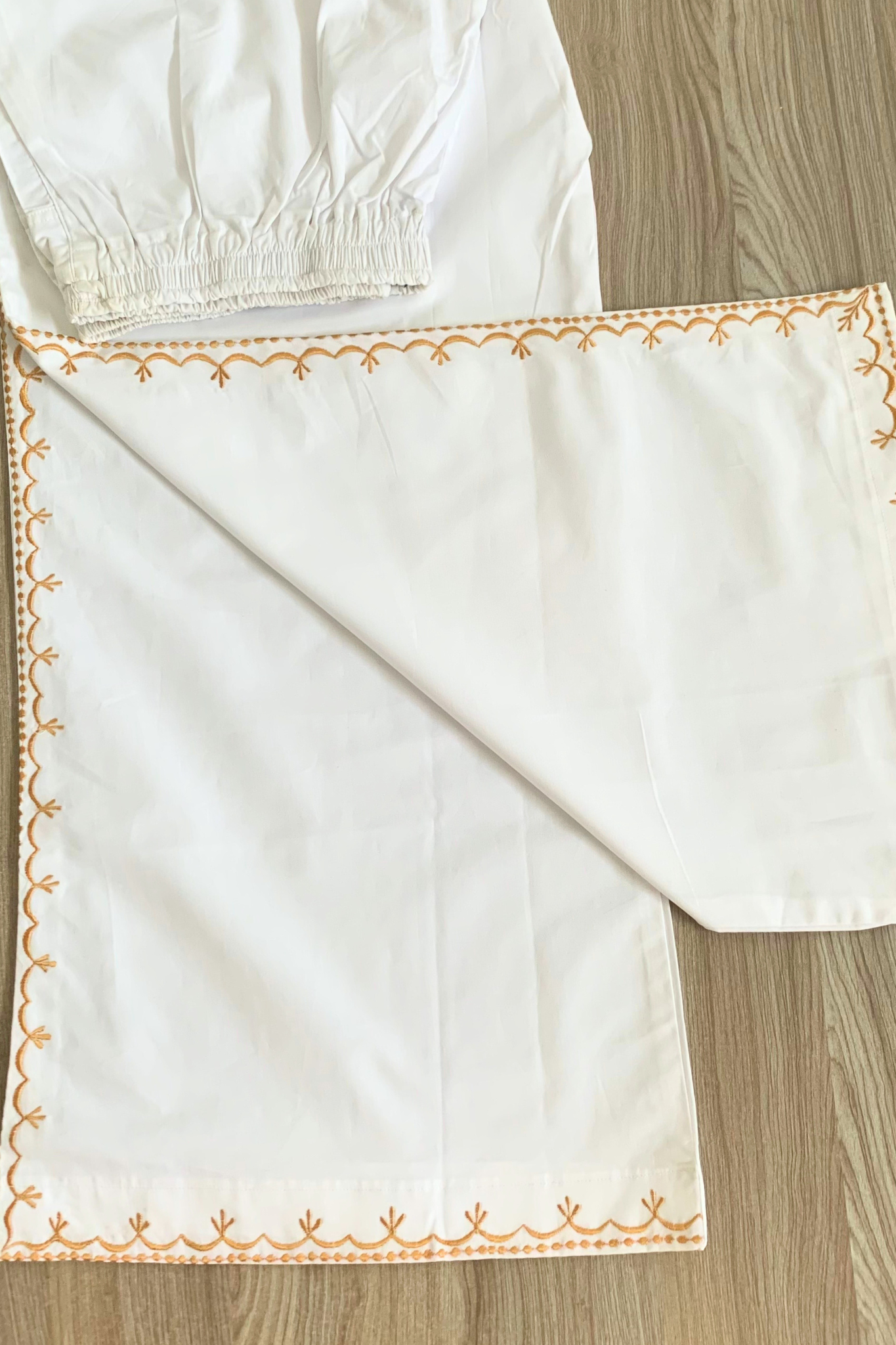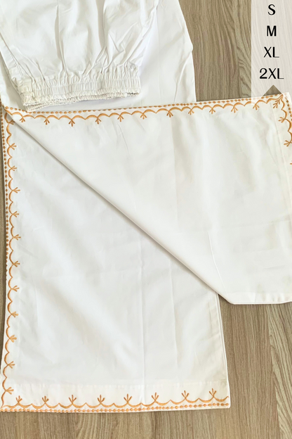 White Embroidered Cotton Palazzo