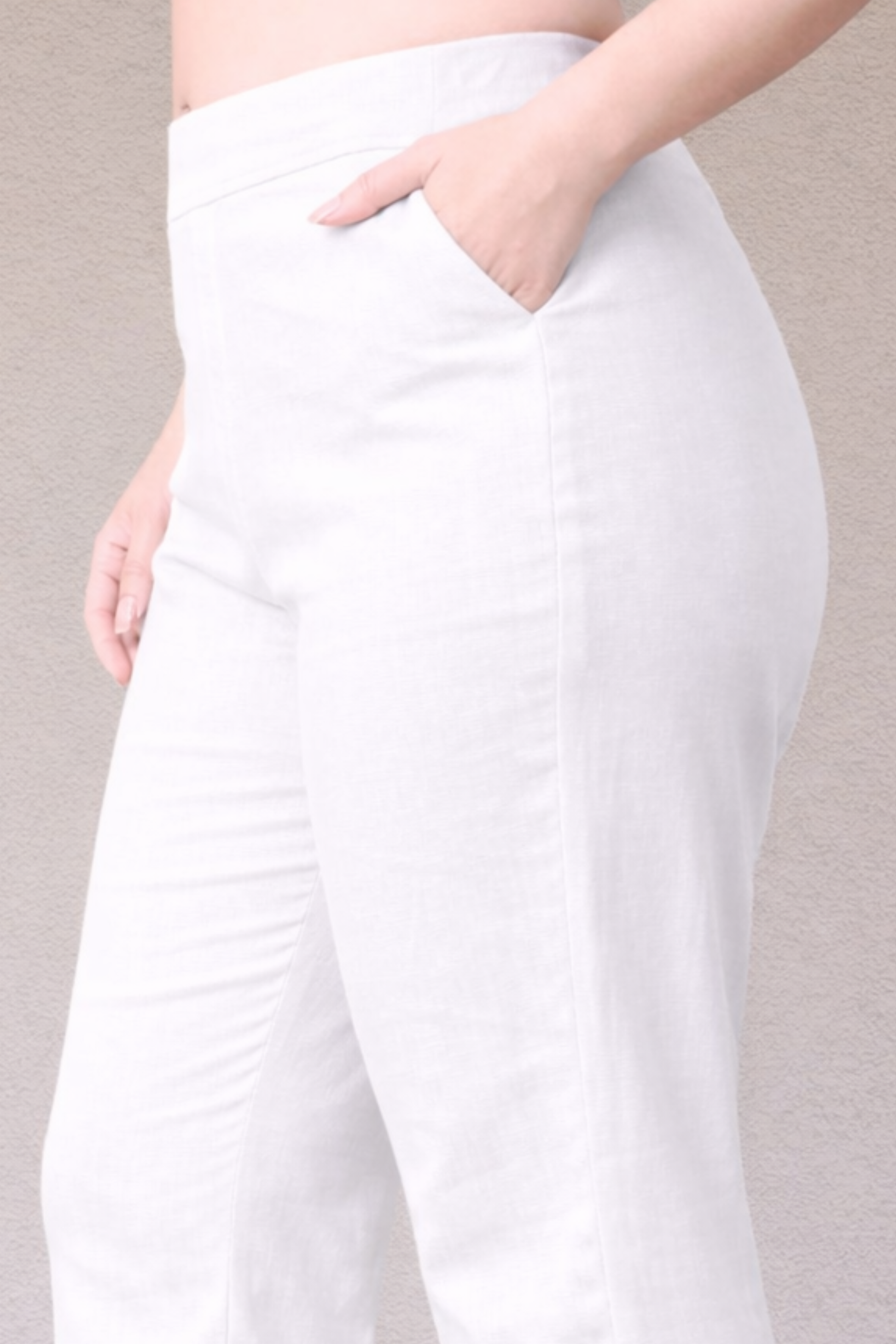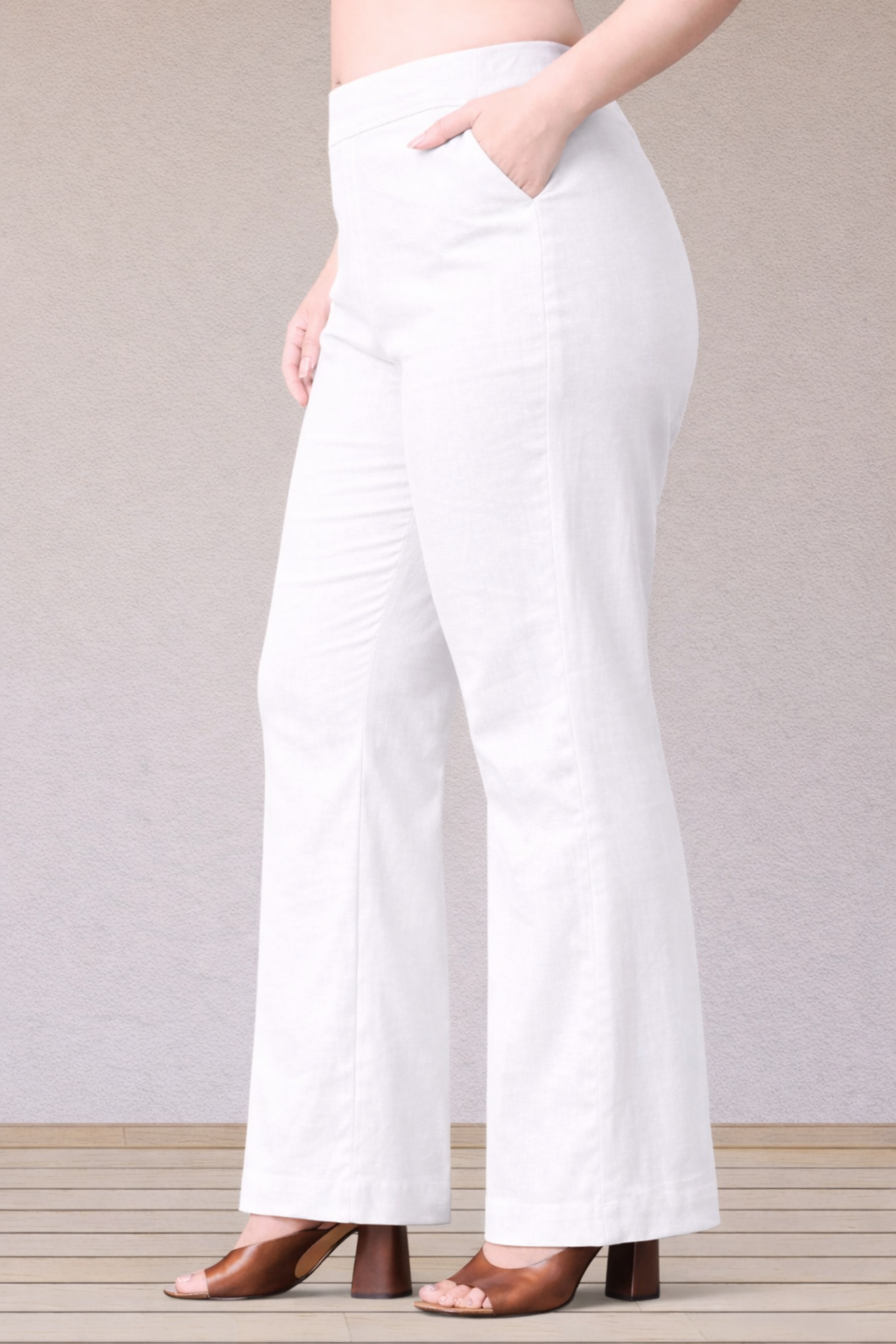 White Flared Slub Pants