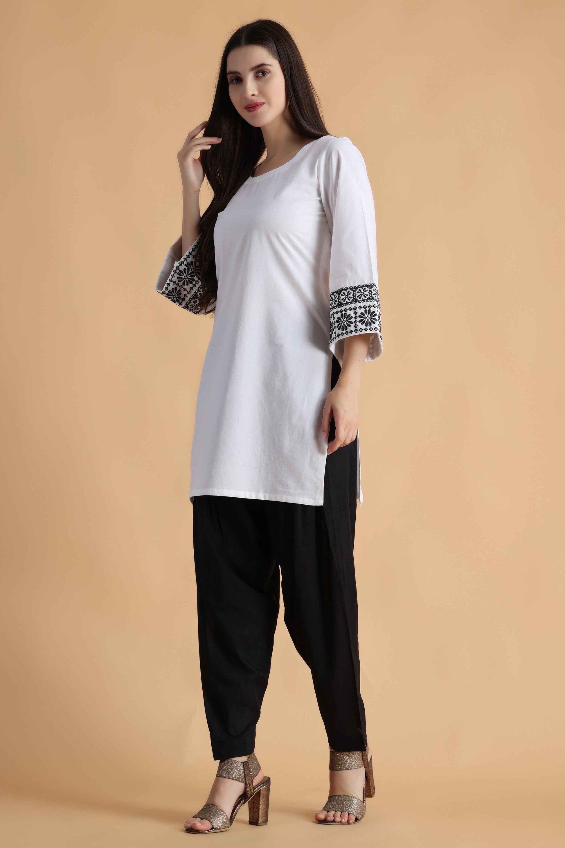 - Round Neckline and 3/4th Detailed Quarter Sleeves