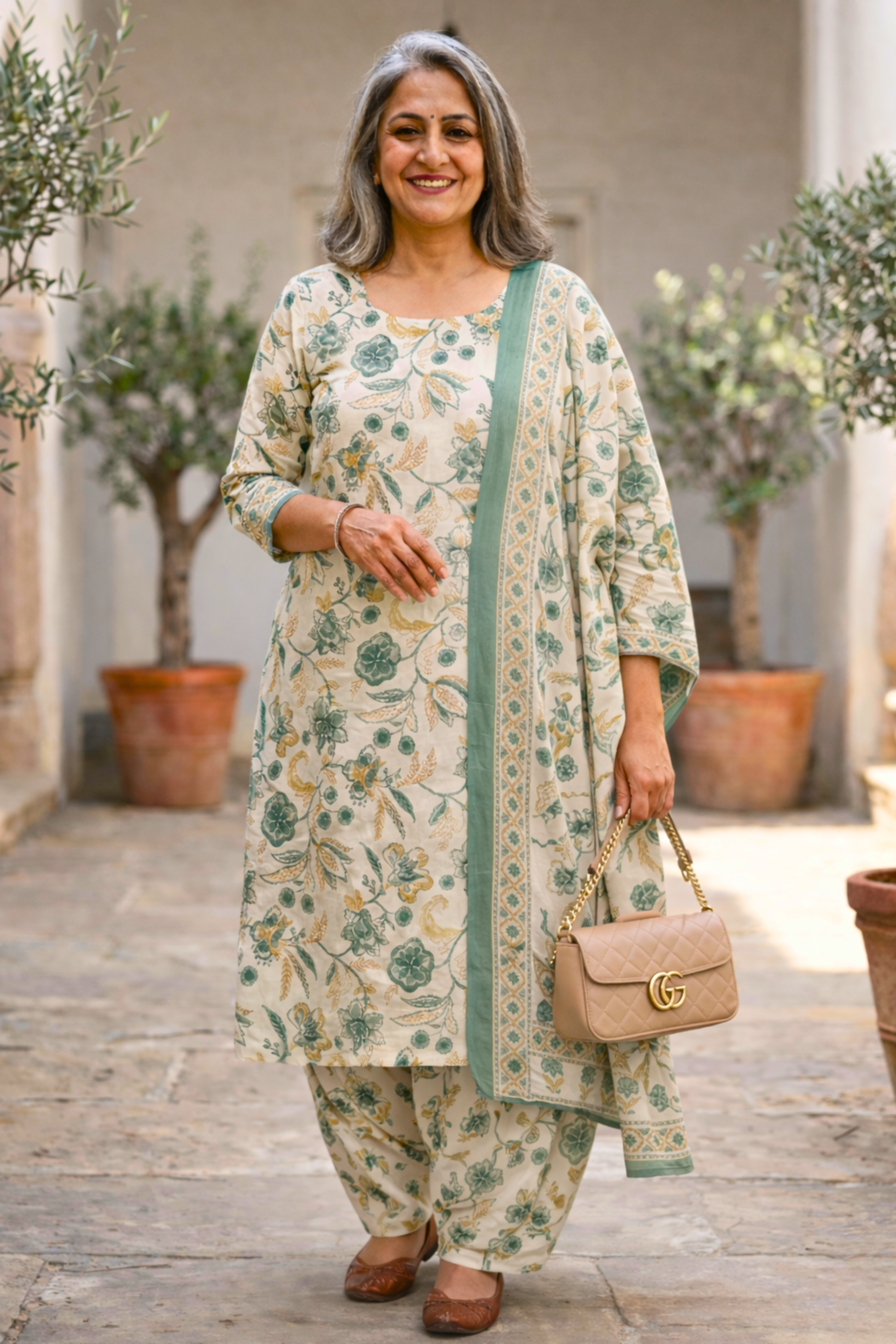 - Matching printed cotton salwar that stays airy