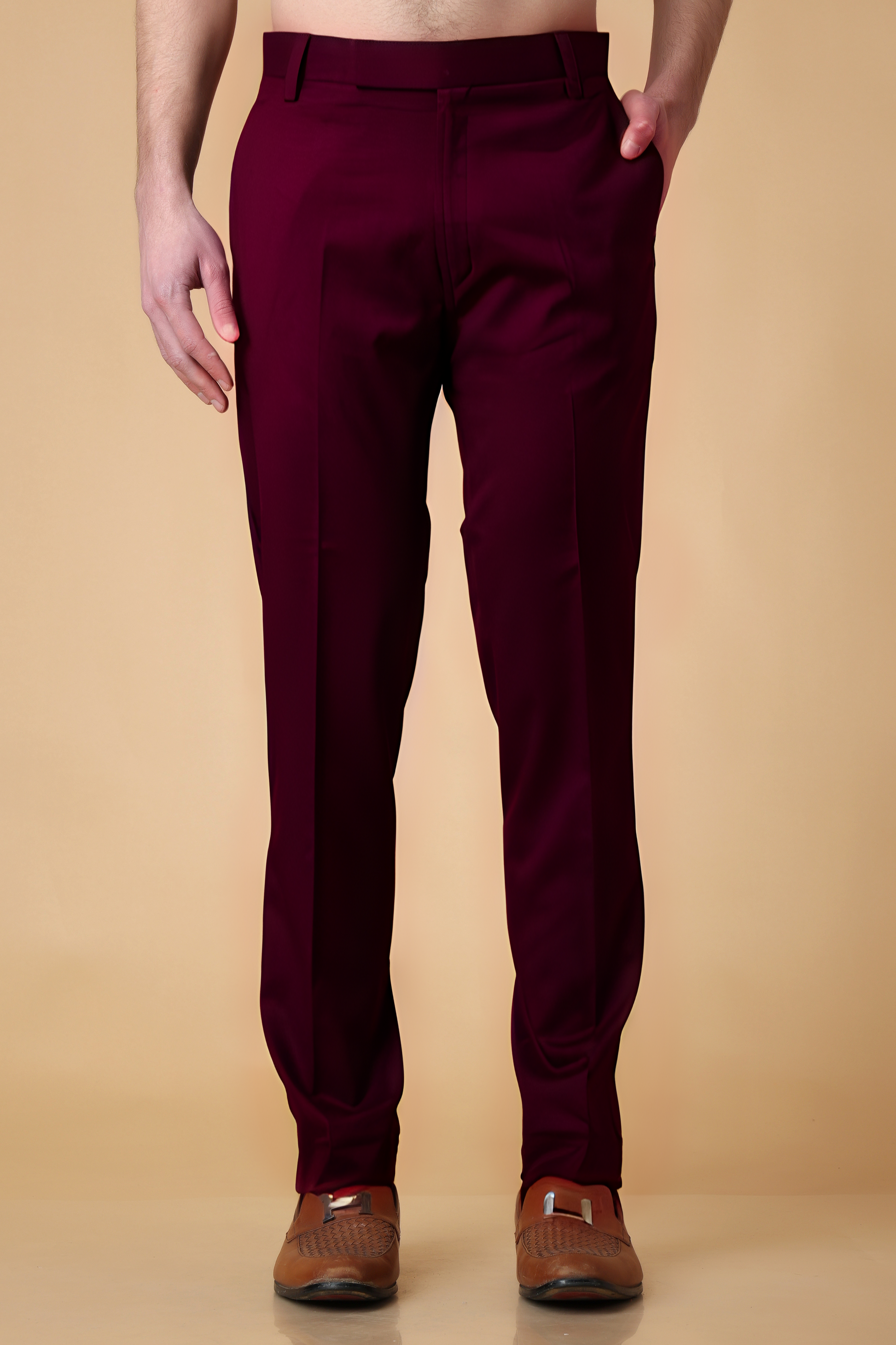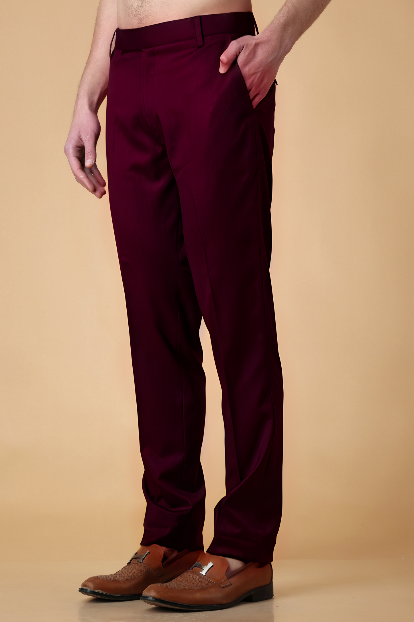 Windsor Wine Solid Stretch Trousers