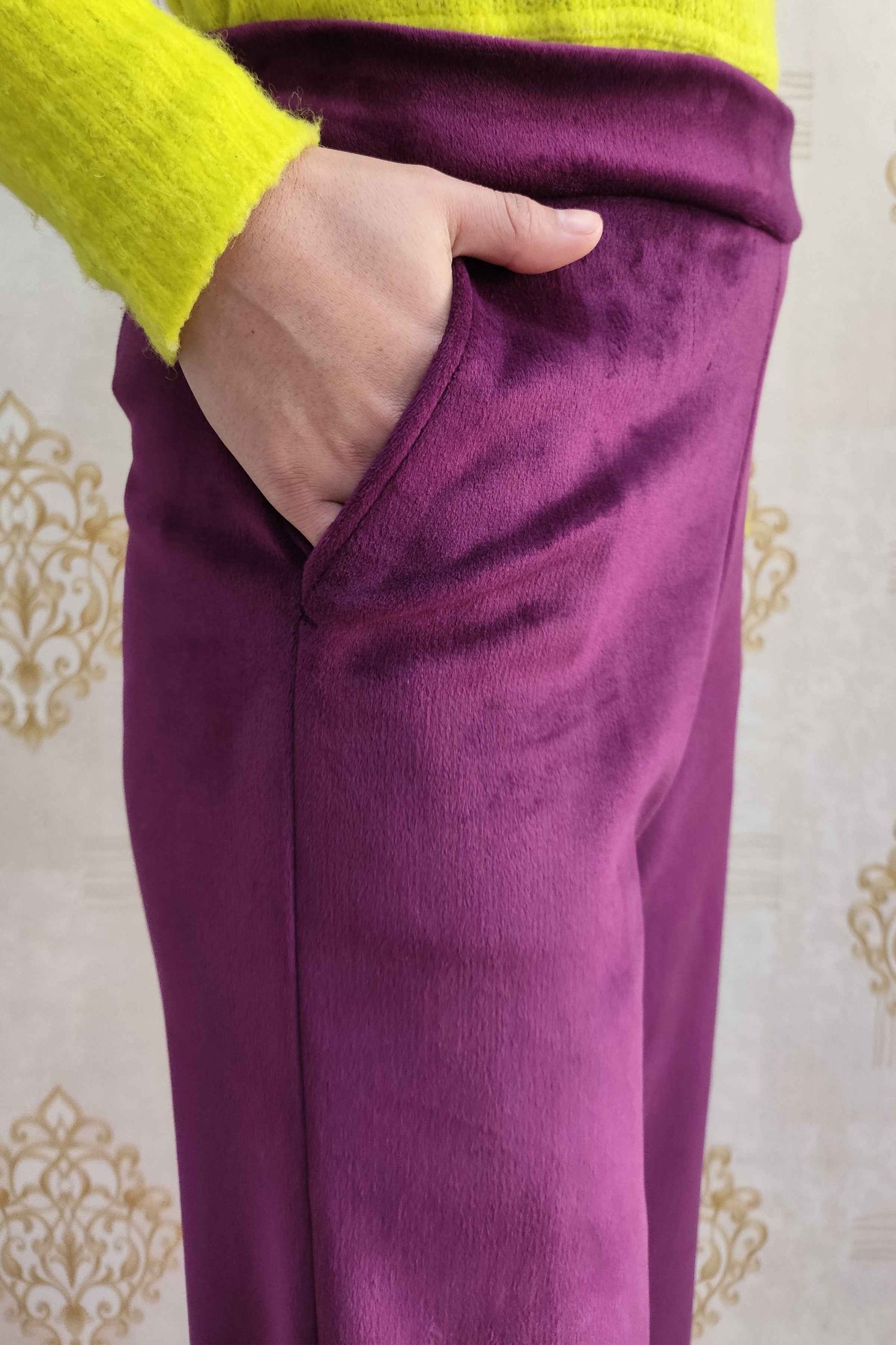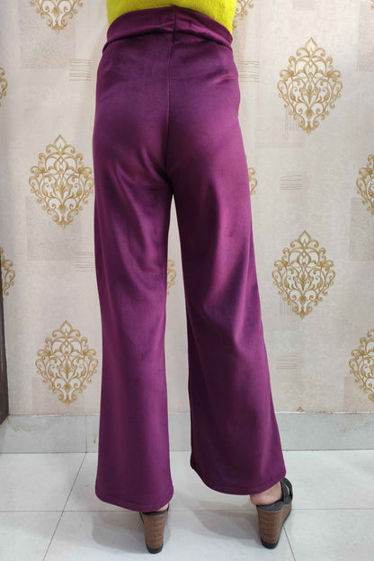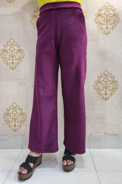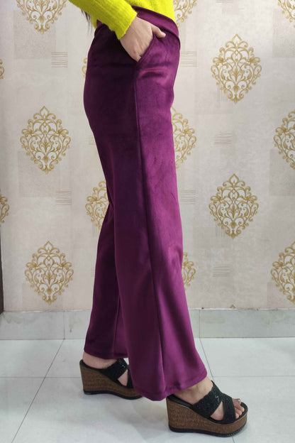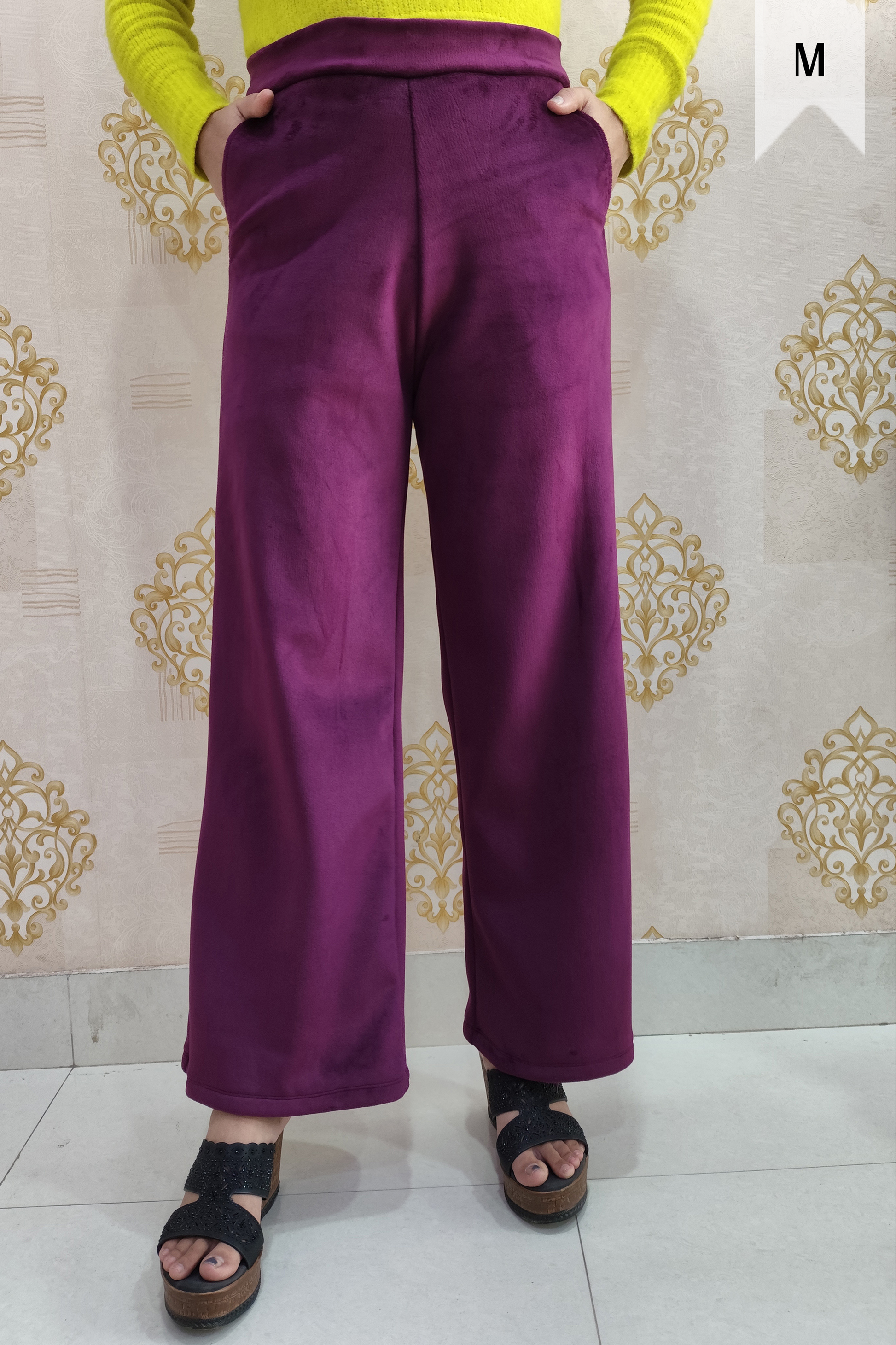 Indulge in style and comfort with our Wine Velvet Fleece Pants. Made from velvet fabric, these pants are designed for a luxurious feel and all-day comfort. The stretchy fit ensures ease of movement, while the two deep pockets add functionality without compromising on elegance. Perfect for Perfect for the office, casual outings, or everyday wear.